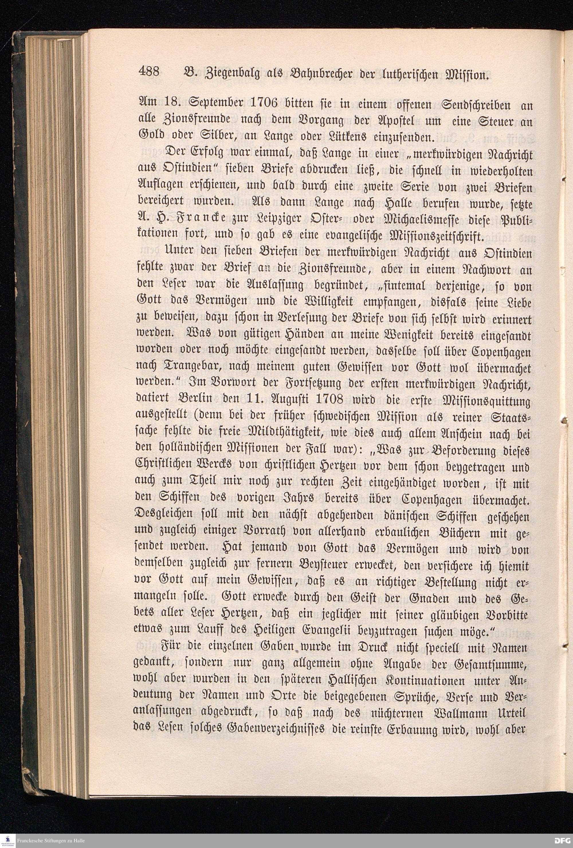 Bartholomäus Ziegenbalg als Bahnbrecher der lutherischen Mission.