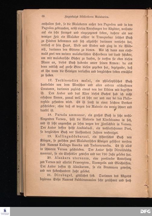 Ziegenbalgs Bibliotheca Malabarica.