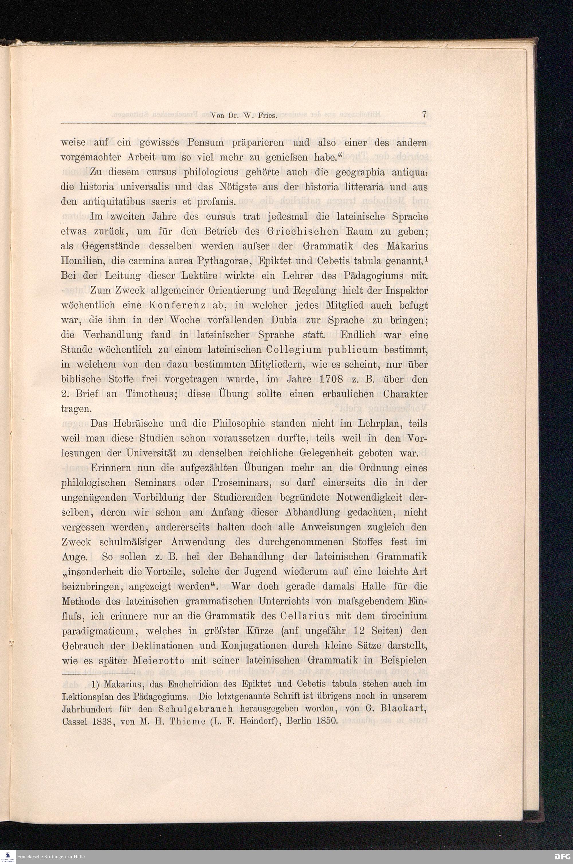 Mitteilungen aus der seminaristischen Praxis in den Franckeschen Stiftungen. II. Das seminarium praeceptorum der älteren Zeit. 1696-1785.