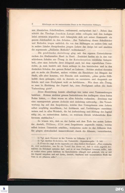 Mitteilungen aus der seminaristischen Praxis in den Franckeschen Stiftungen. II. Das seminarium praeceptorum der älteren Zeit. 1696-1785.