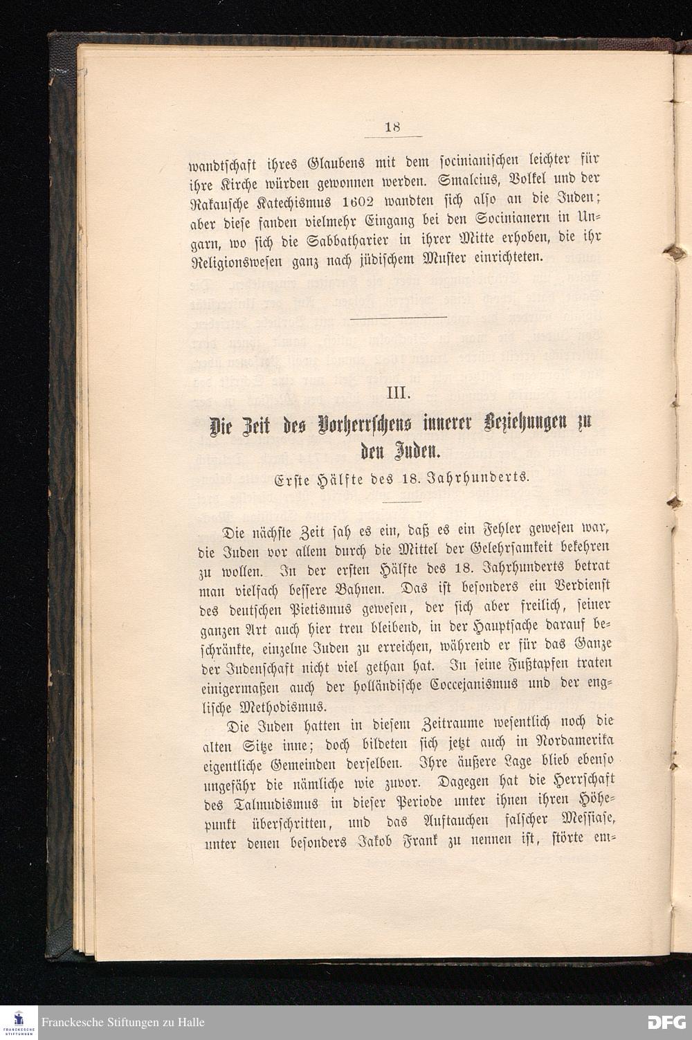 III. Die Zeit des Vorherrschens innerer Beziehungen zu den Juden. Erste Hälfte des 18. Jahrhunderts.