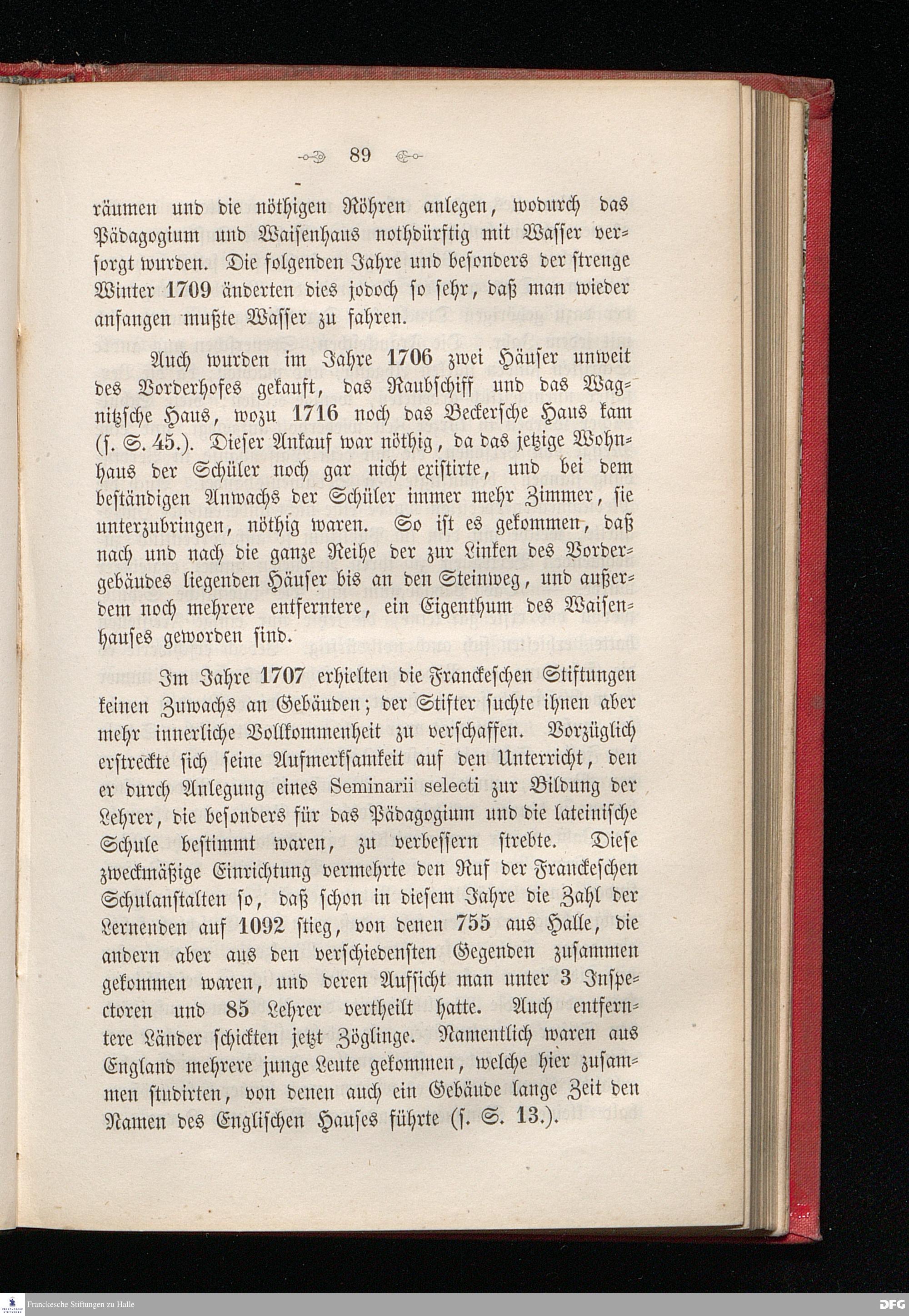 II. Geschichte des Stifters und seiner Stiftungen seit seiner Ankunft in Halle.
