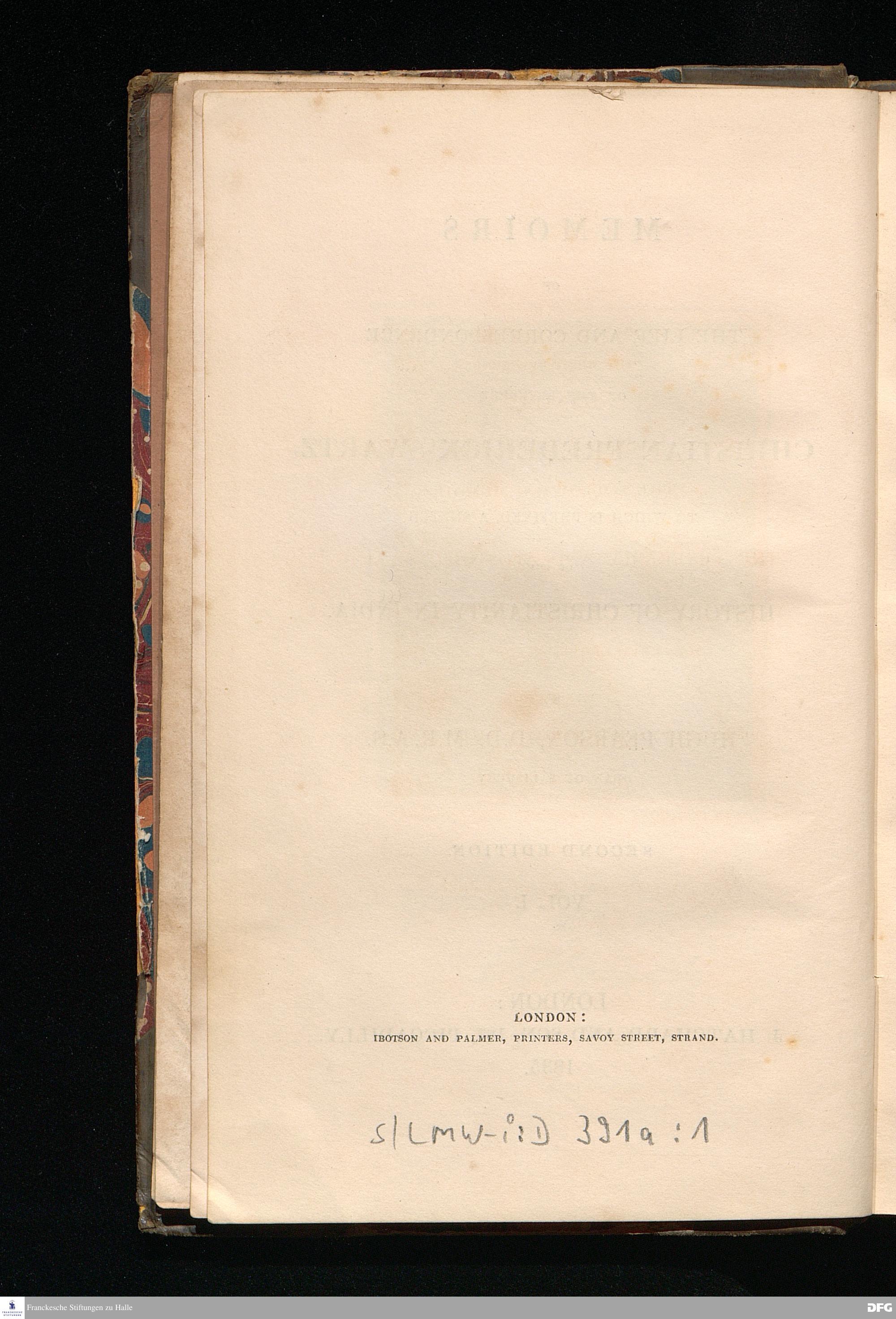 Memoirs of the life and correspondence of the reverend Christian Frederick Swartz. To which is prefixed a sketch of the history of christianity in India.