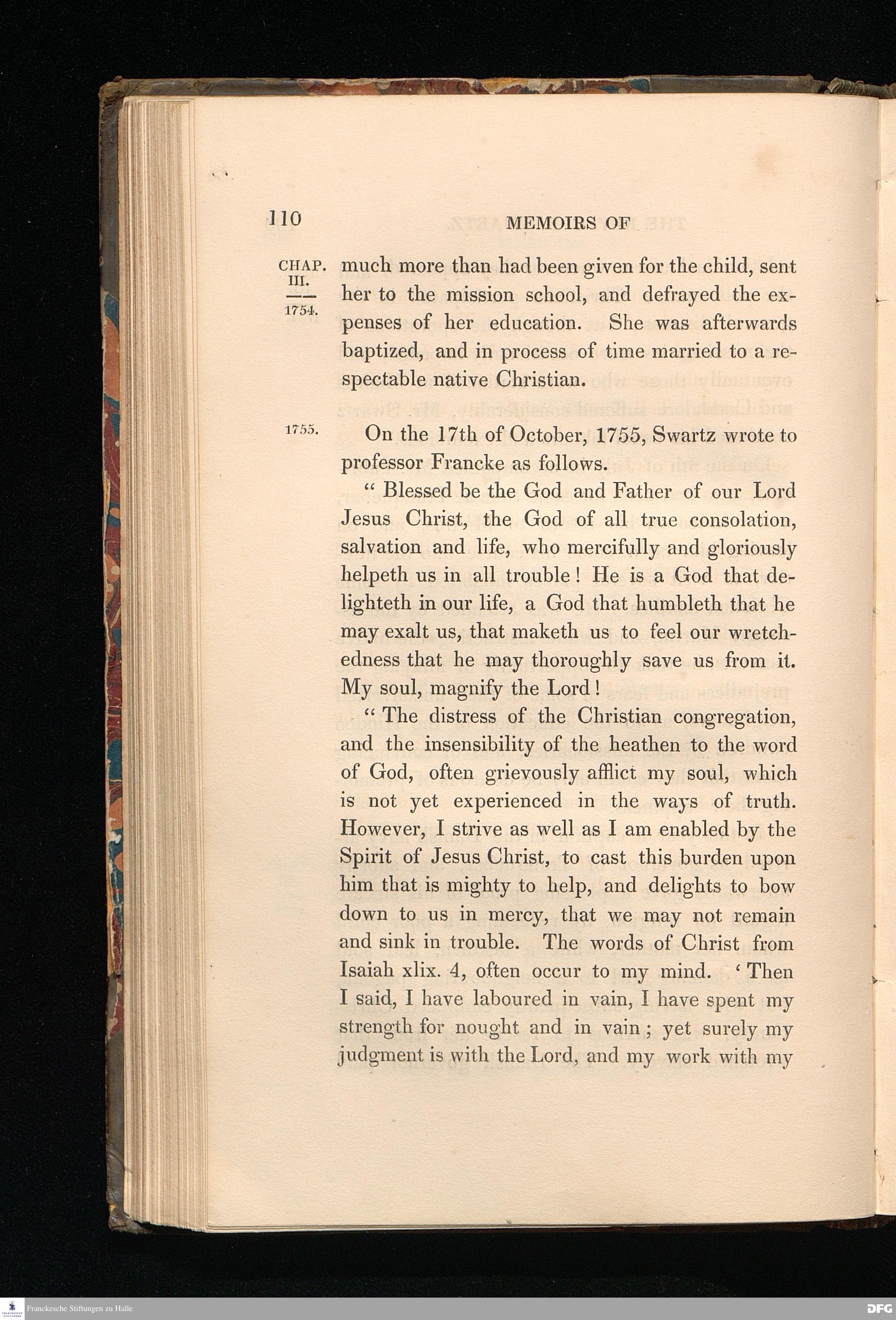 Memoirs of the life and correspondence of the reverend Christian Frederick Swartz.... SECOND EDITION. VOL. 1. MEMOIRS OF THE REV. C. F. SWARTZ. CHAPTER III.