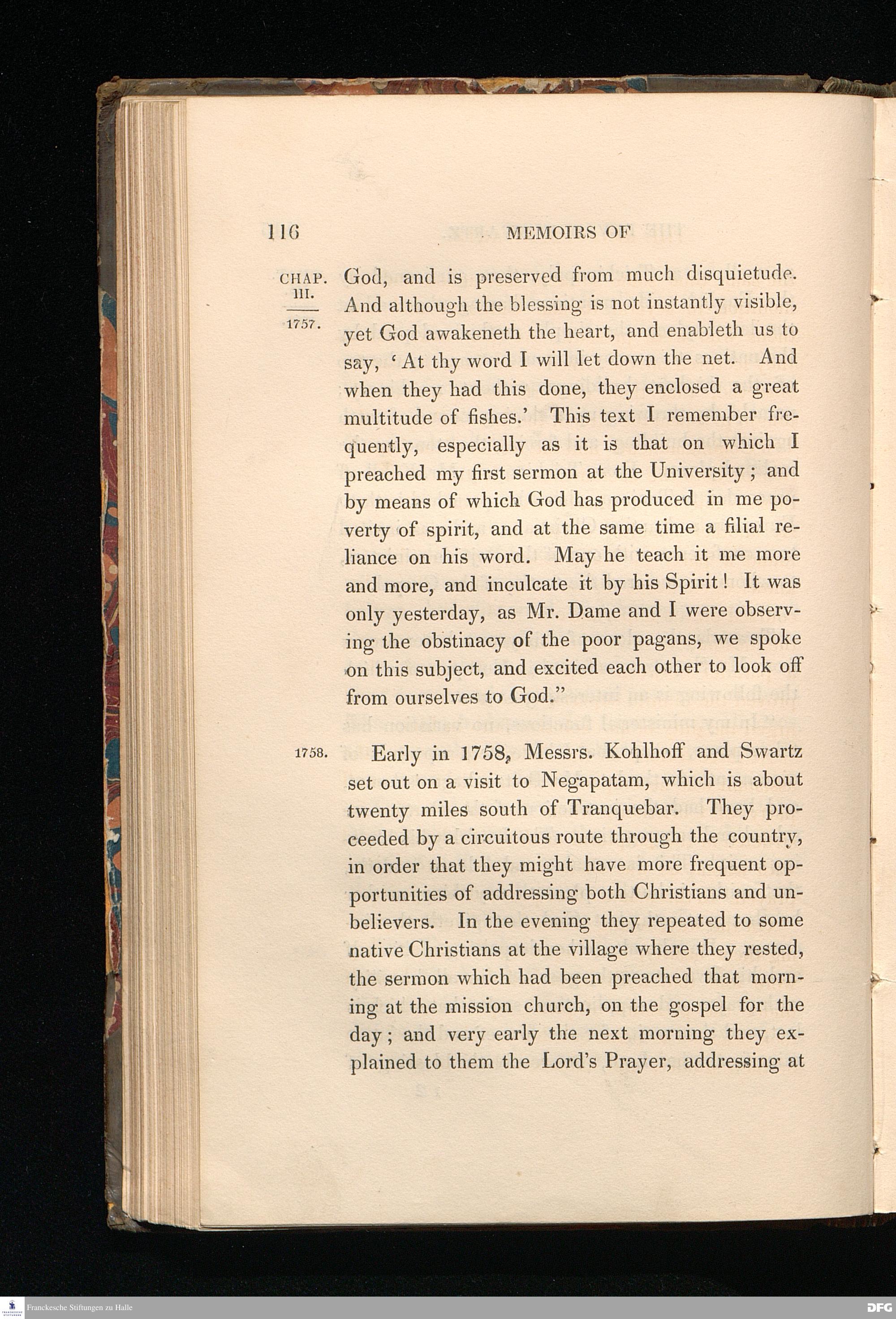 Memoirs of the life and correspondence of the reverend Christian Frederick Swartz.... SECOND EDITION. VOL. 1. MEMOIRS OF THE REV. C. F. SWARTZ. CHAPTER III.