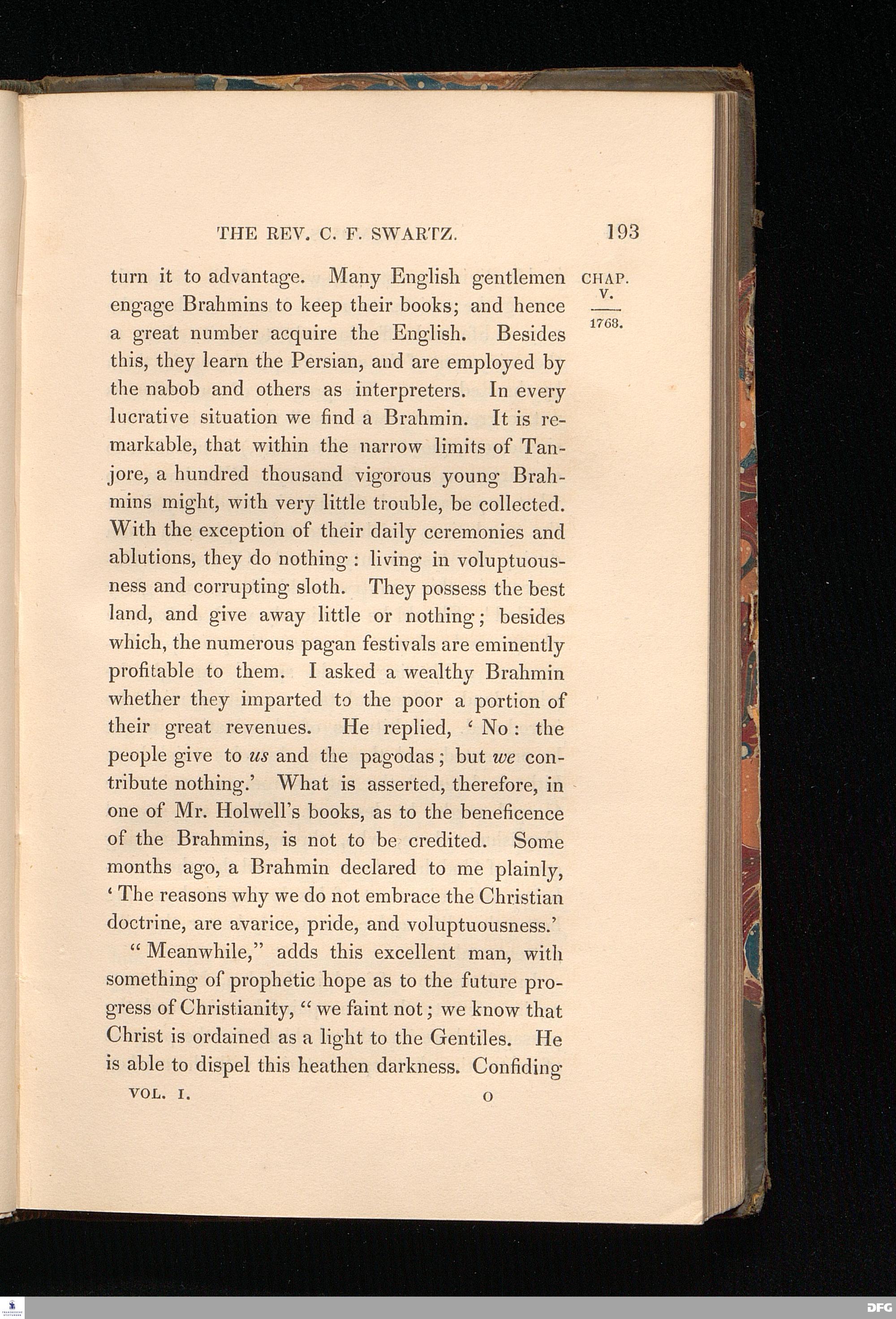 Memoirs of the life and correspondence of the reverend Christian Frederick Swartz. To which is prefixed a sketch of the history of christianity in India.