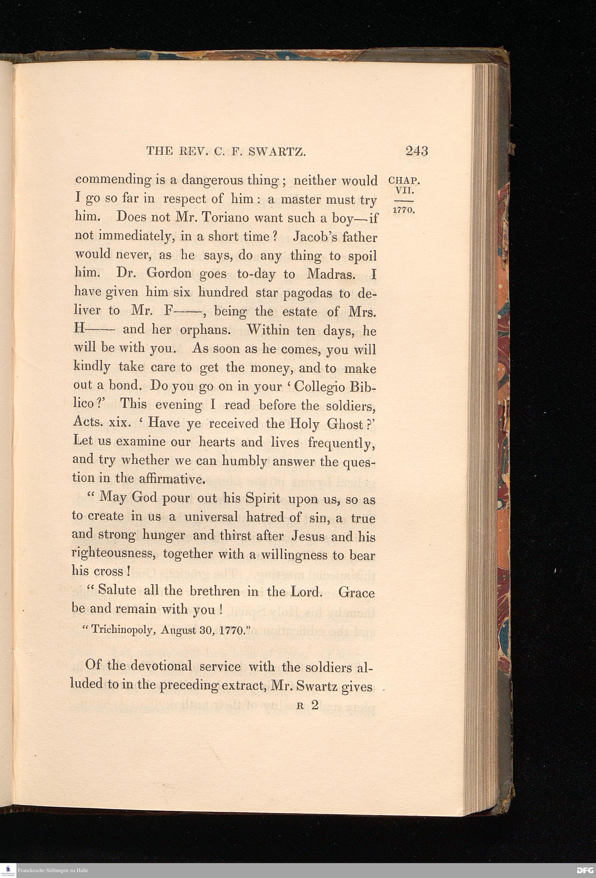 Memoirs of the life and correspondence of the reverend Christian Frederick Swartz. To which is prefixed a sketch of the history of christianity in India.