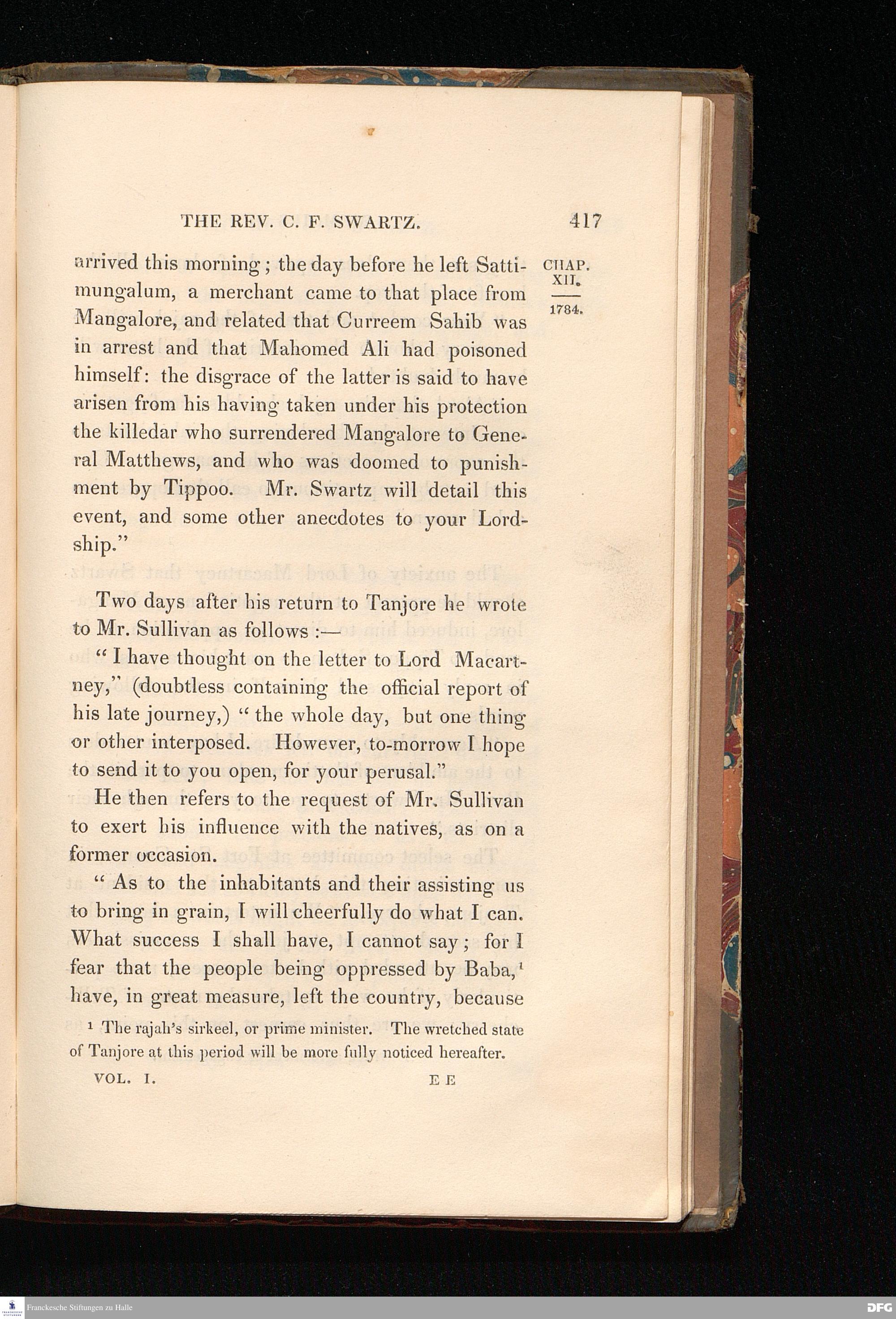 Memoirs of the life and correspondence of the reverend Christian Frederick Swartz. To which is prefixed a sketch of the history of christianity in India.