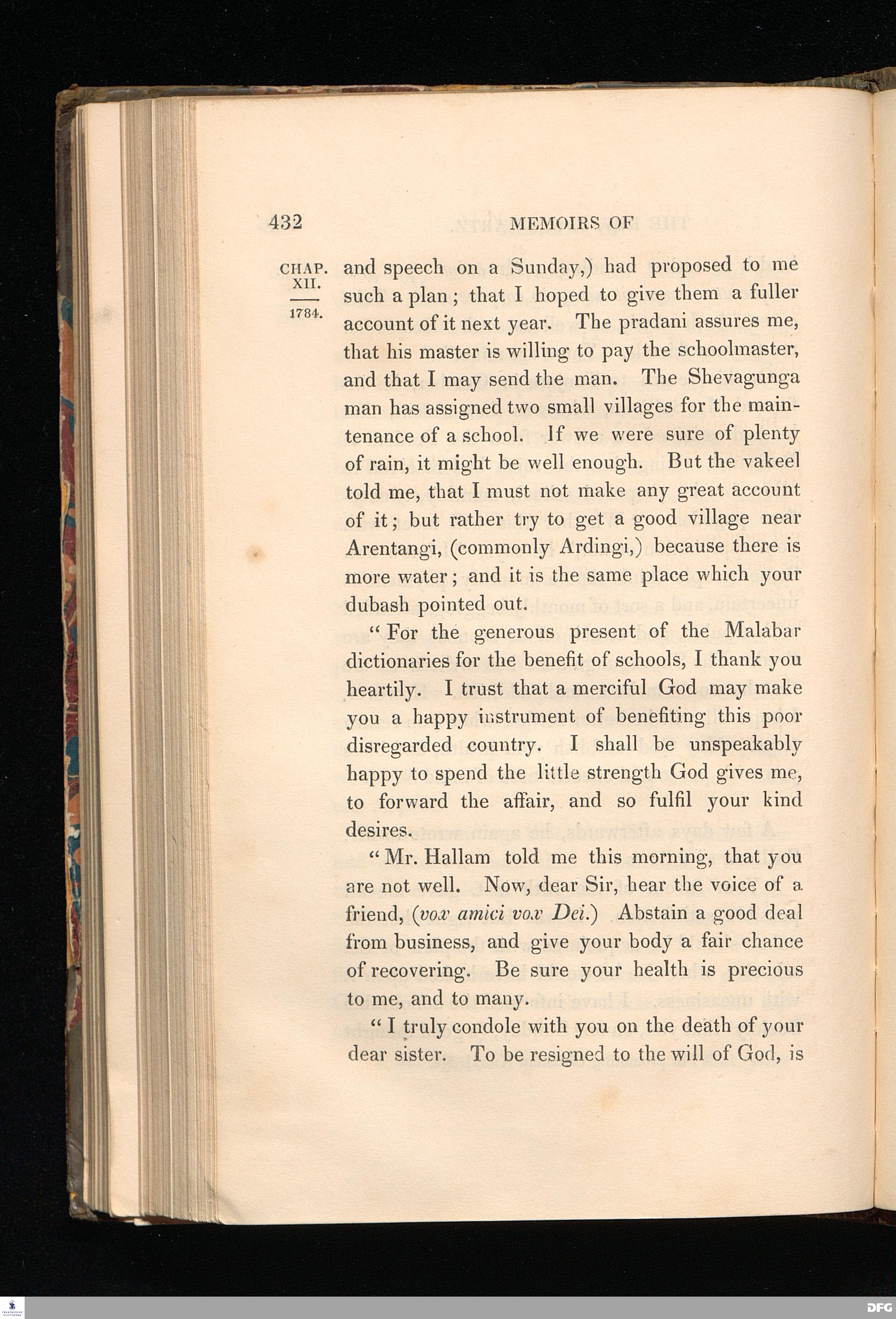 Memoirs of the life and correspondence of the reverend Christian Frederick Swartz. To which is prefixed a sketch of the history of christianity in India.