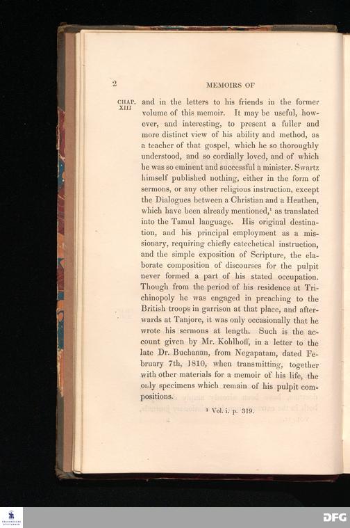 Memoirs of the life and correspondence of the reverend Christian Frederick Swartz. To which is prefixed a sketch of the history of christianity in India.