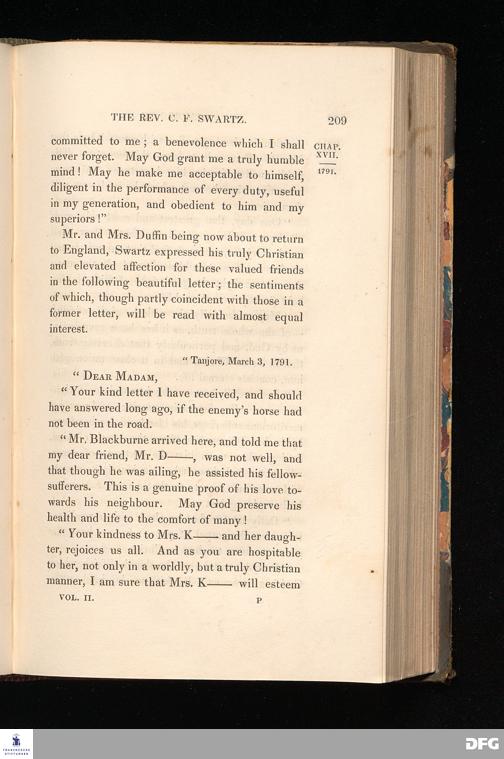 Memoirs of the life and correspondence of the reverend Christian Frederick Swartz.... SECOND EDITION. VOL. 2. CHAPTER XVII.