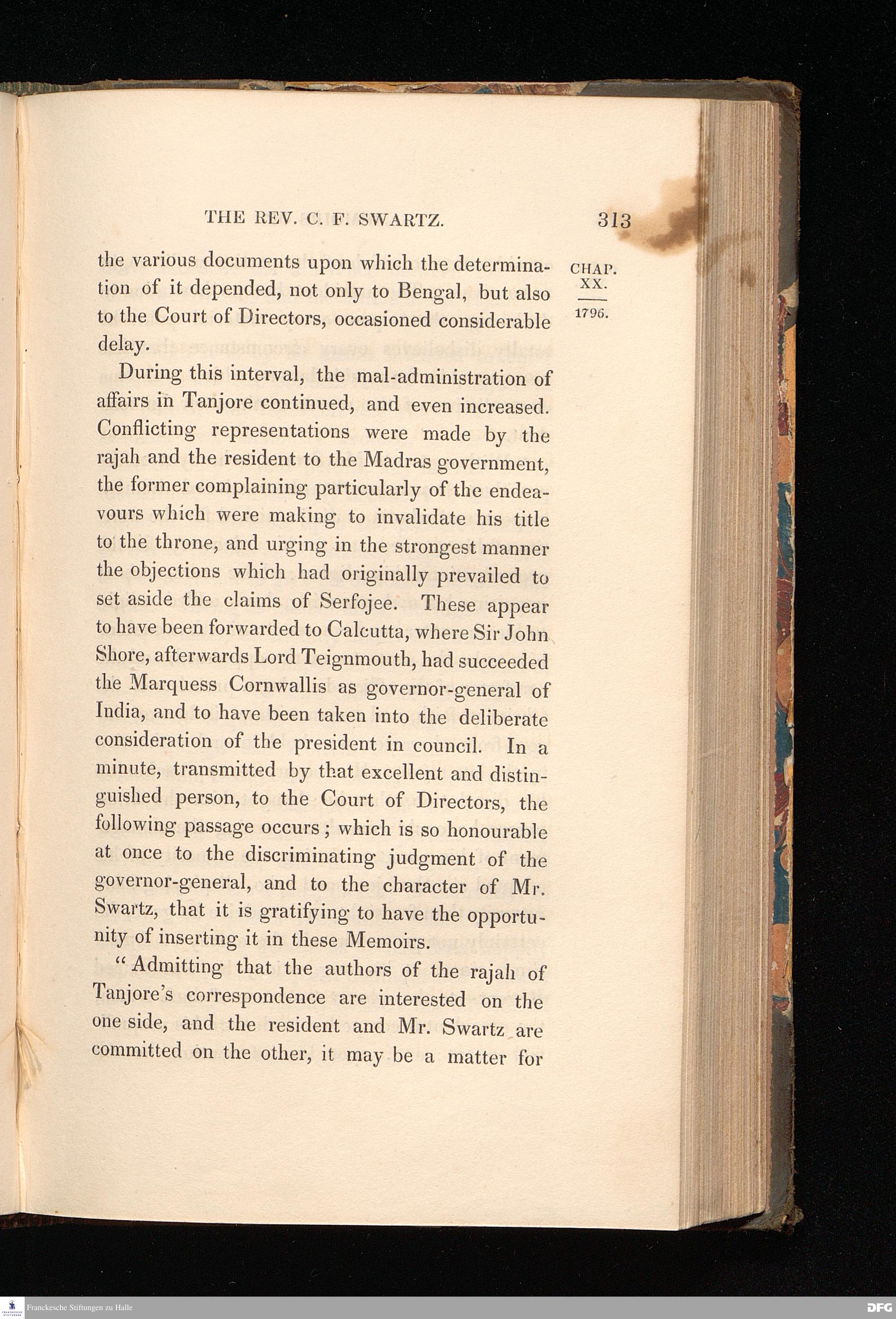 Memoirs of the life and correspondence of the reverend Christian Frederick Swartz. To which is prefixed a sketch of the history of christianity in India.