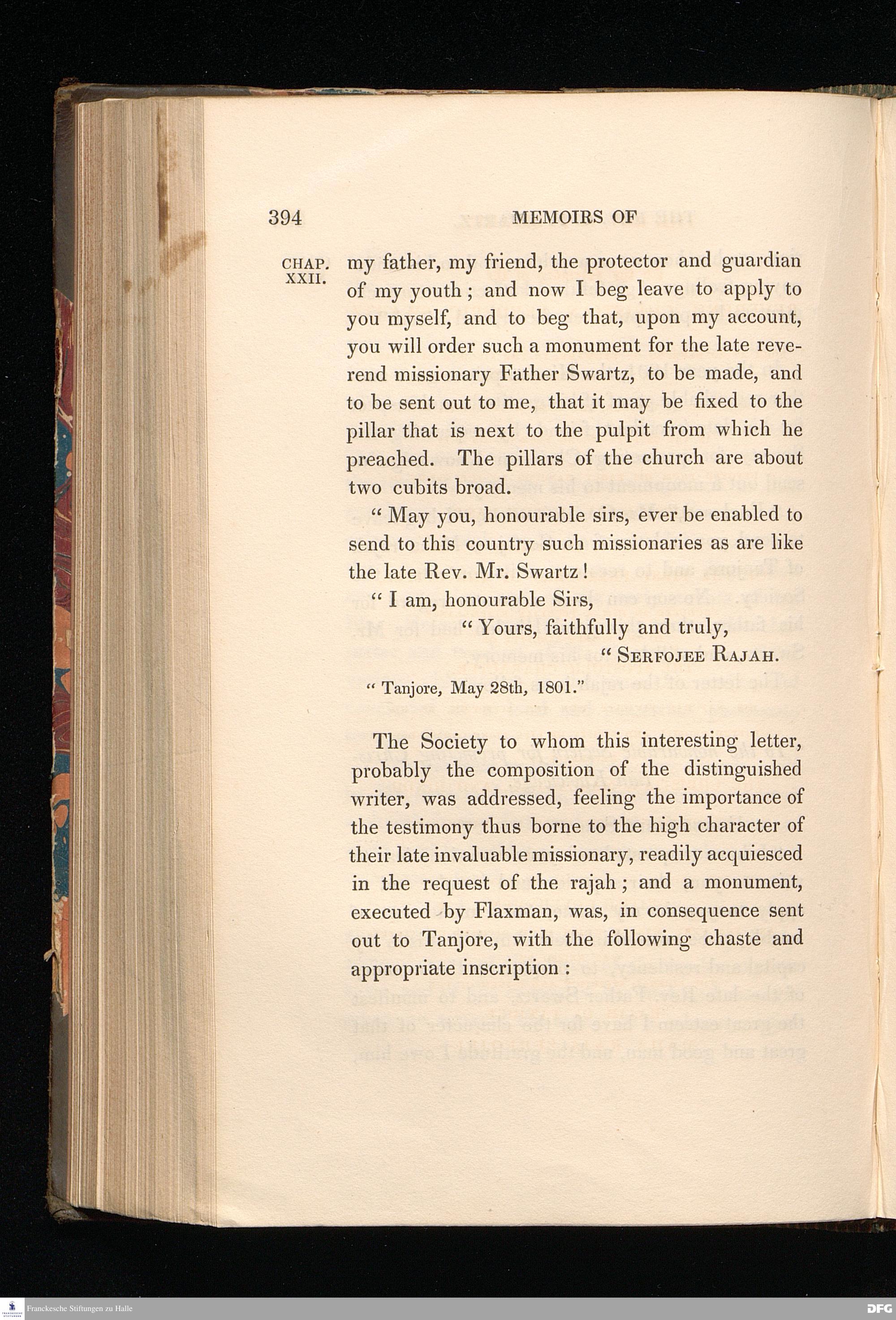 Memoirs of the life and correspondence of the reverend Christian Frederick Swartz. To which is prefixed a sketch of the history of christianity in India.