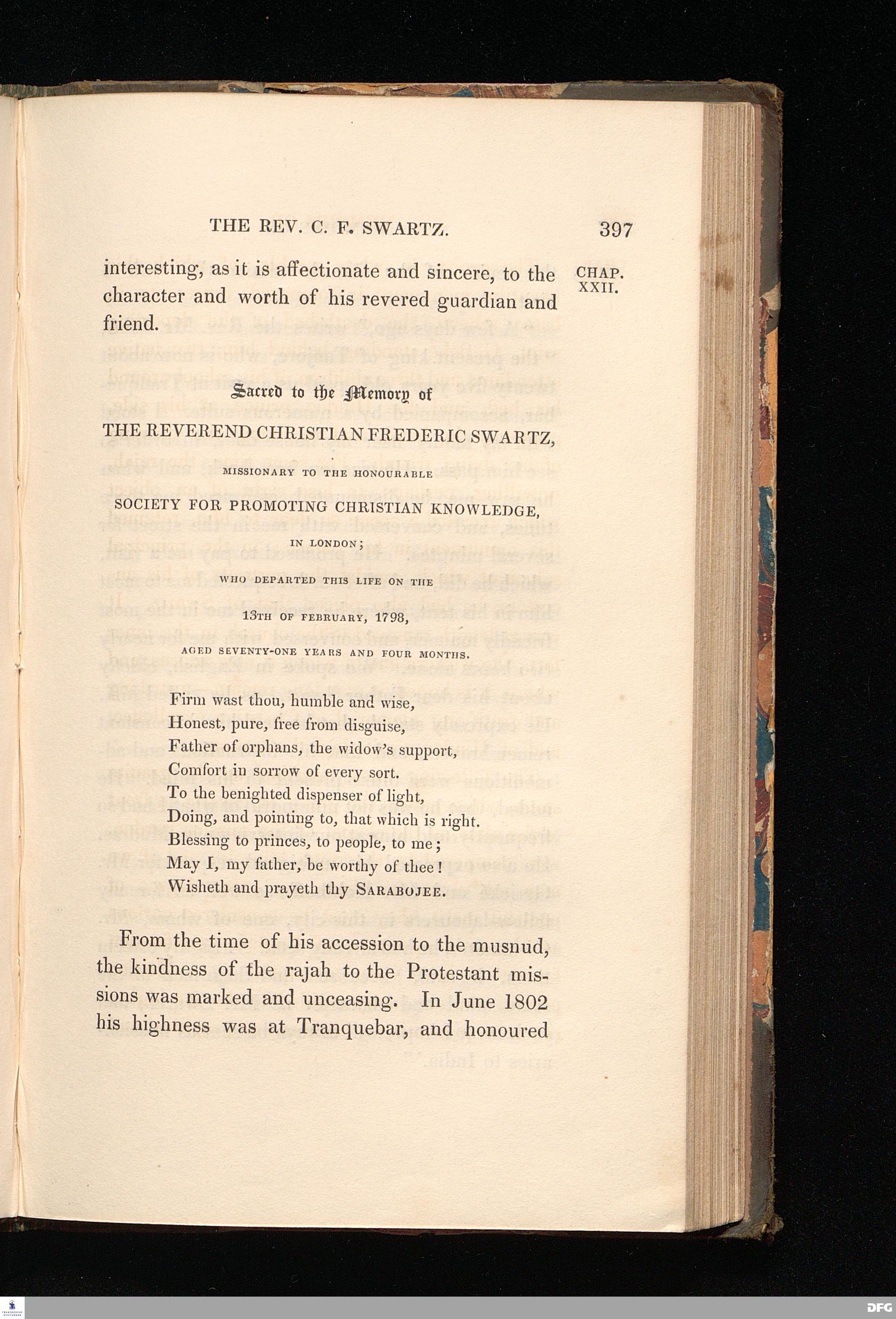 Memoirs of the life and correspondence of the reverend Christian Frederick Swartz. To which is prefixed a sketch of the history of christianity in India.