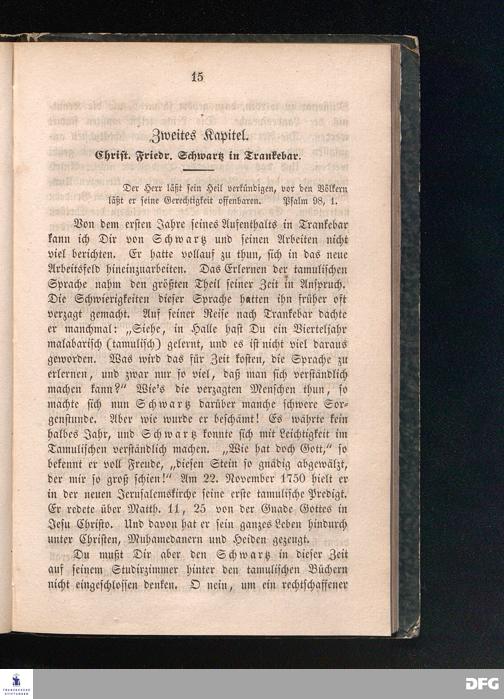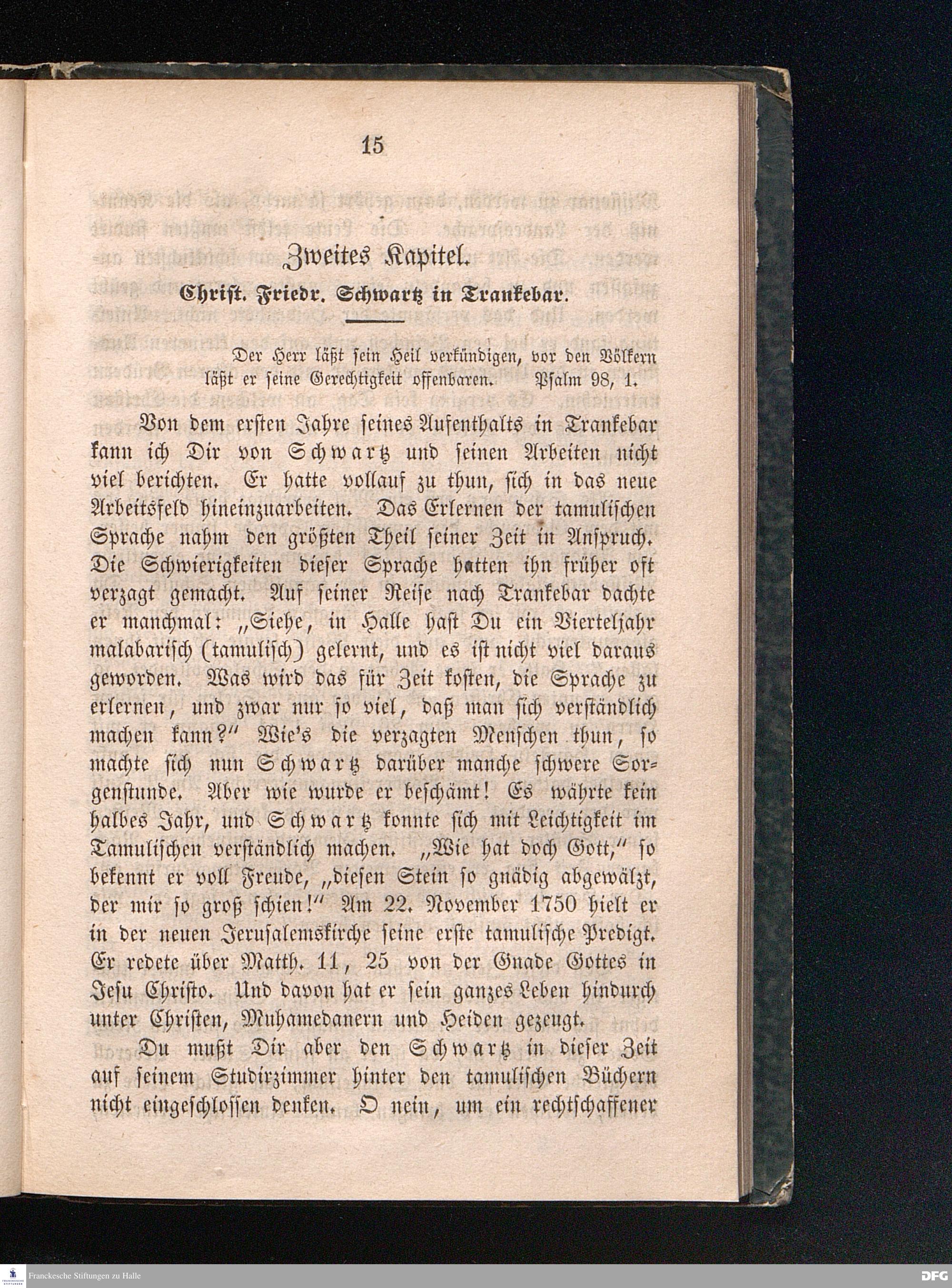Christian Friedrich Schwartz, evangelischer Missionar in Trankebar, Tiruschinapalli und Tanjour in Ostindien. Nach seinem Leben und Wirken dargest..