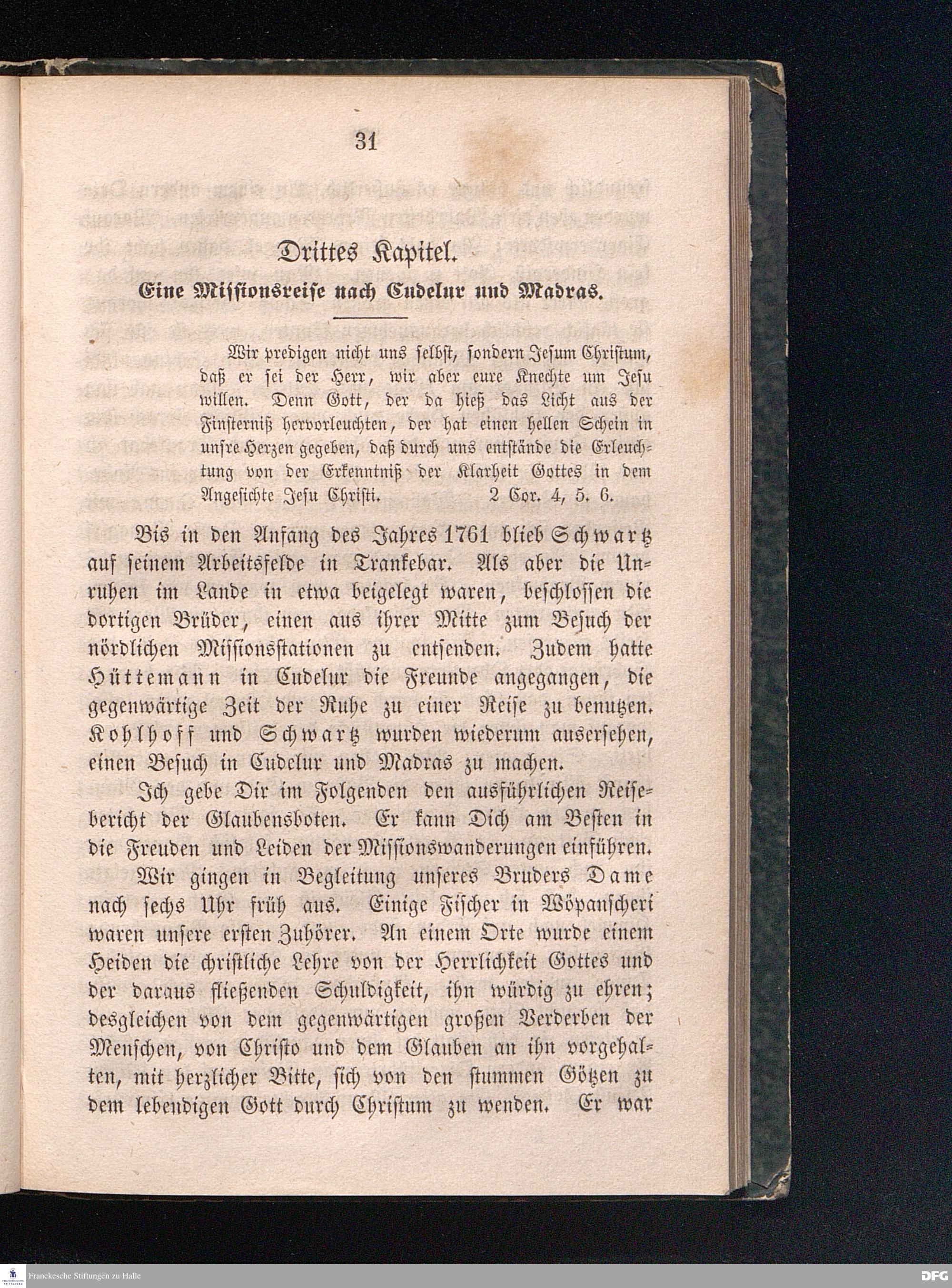 Christian Friedrich Schwartz, evangelischer Missionar in Trankebar, Tiruschinapalli und Tanjour in Ostindien. Nach seinem Leben und Wirken dargest..