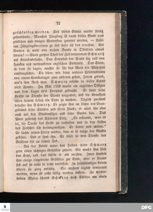 Christian Friedrich Schwartz, evangelischer Missionar in Trankebar, Tiruschinapalli und Tanjour in Ostindien. Nach seinem Leben und Wirken dargest..