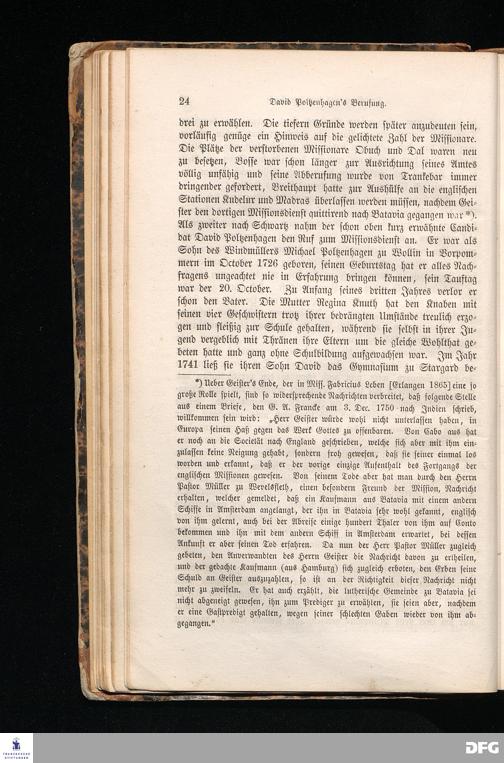 Erster Abschnitt. Von Sonnenburg nach Trankebar. (1726 - 1750).