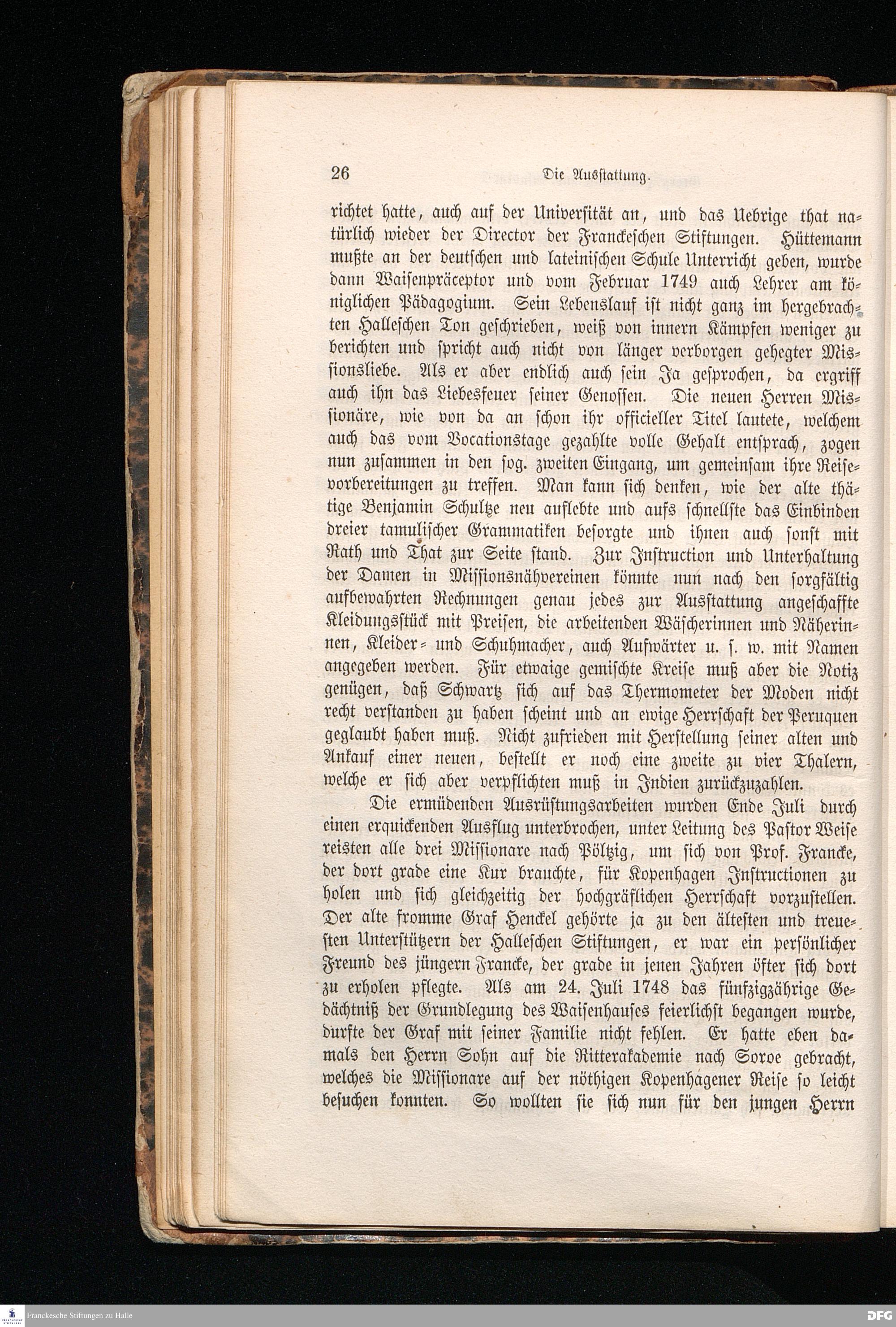 Erster Abschnitt. Von Sonnenburg nach Trankebar. (1726 - 1750).