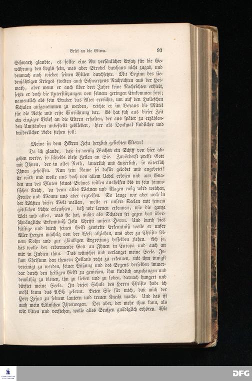 Missionar Christian Friedrich Schwartz. Sein Leben und Wirken aus Briefen des Halleschen Missionsarchivs.