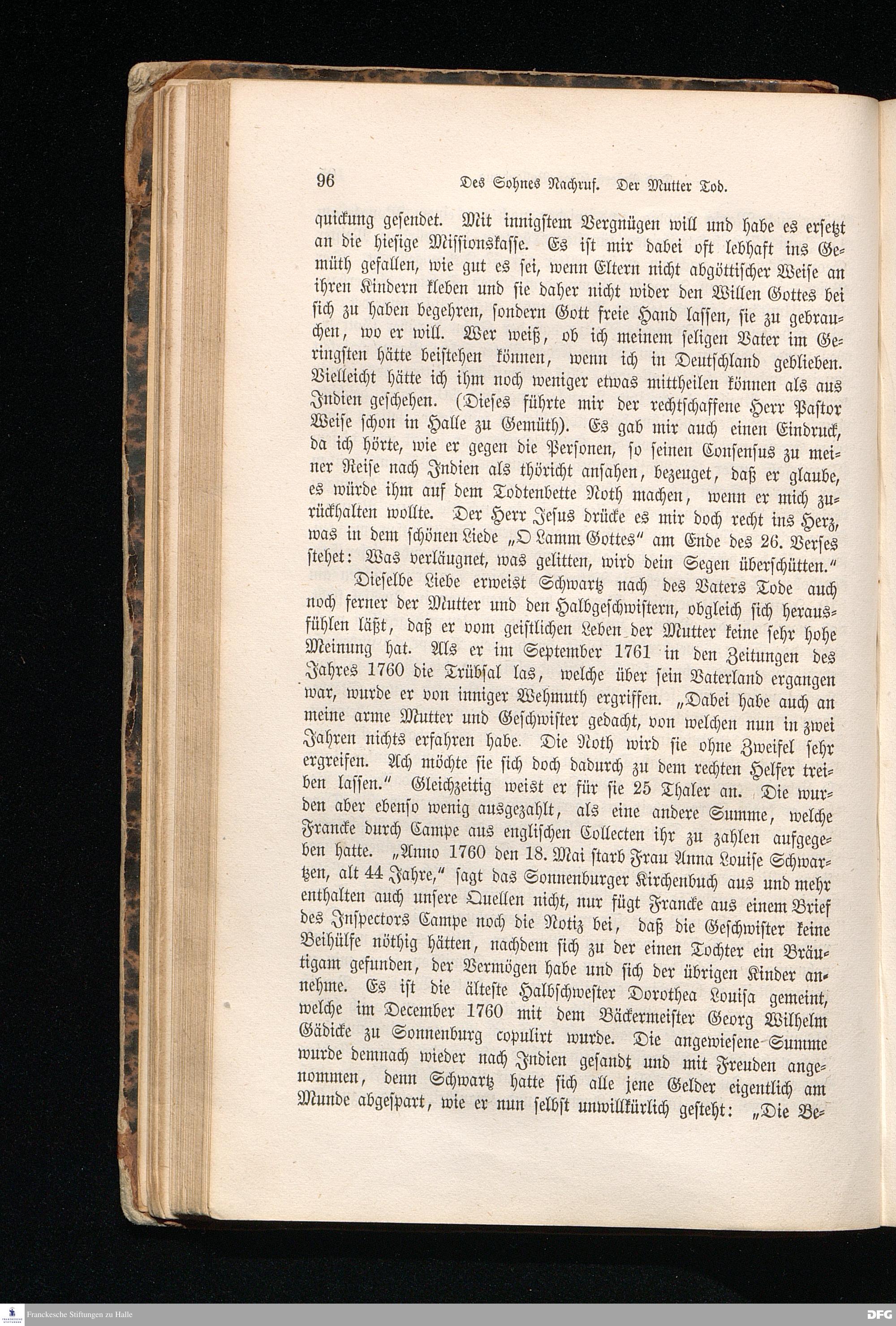 Erster Abschnitt. Von Sonnenburg nach Trankebar. (1726 - 1750).