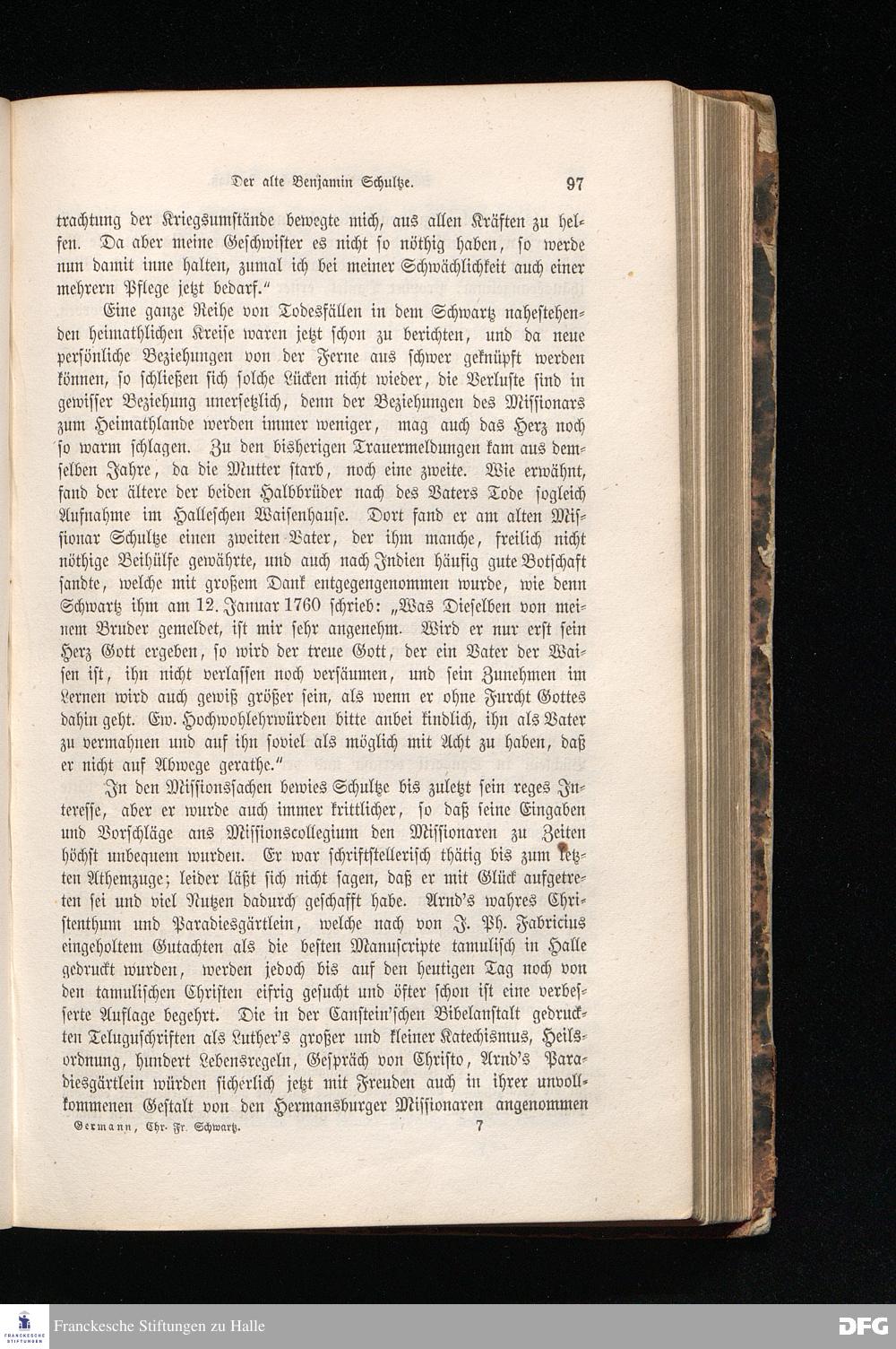 Missionar Christian Friedrich Schwartz. Sein Leben und Wirken aus Briefen des Halleschen Missionsarchivs.