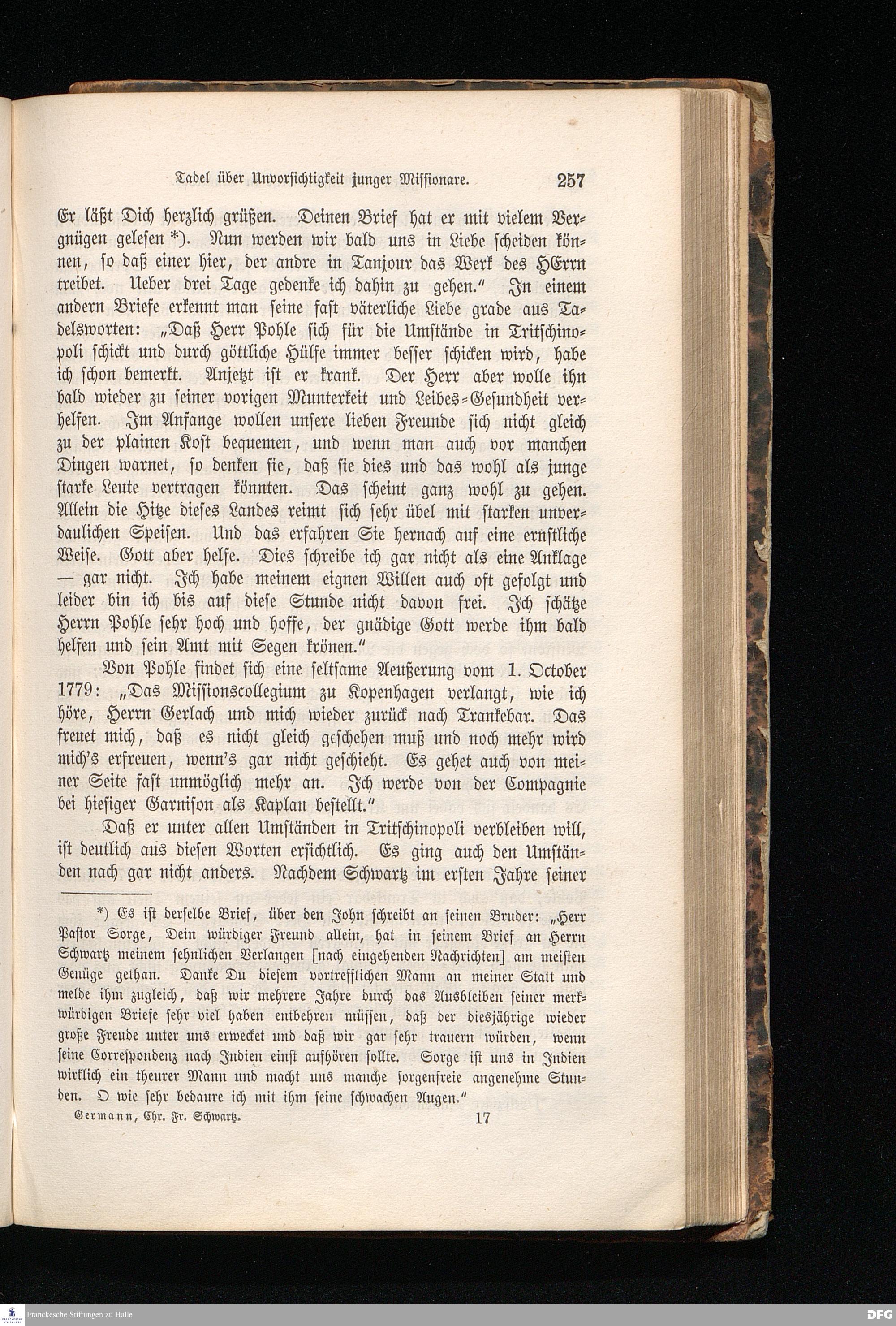 Missionar Christian Friedrich Schwartz. Sein Leben und Wirken aus Briefen des Halleschen Missionsarchivs.