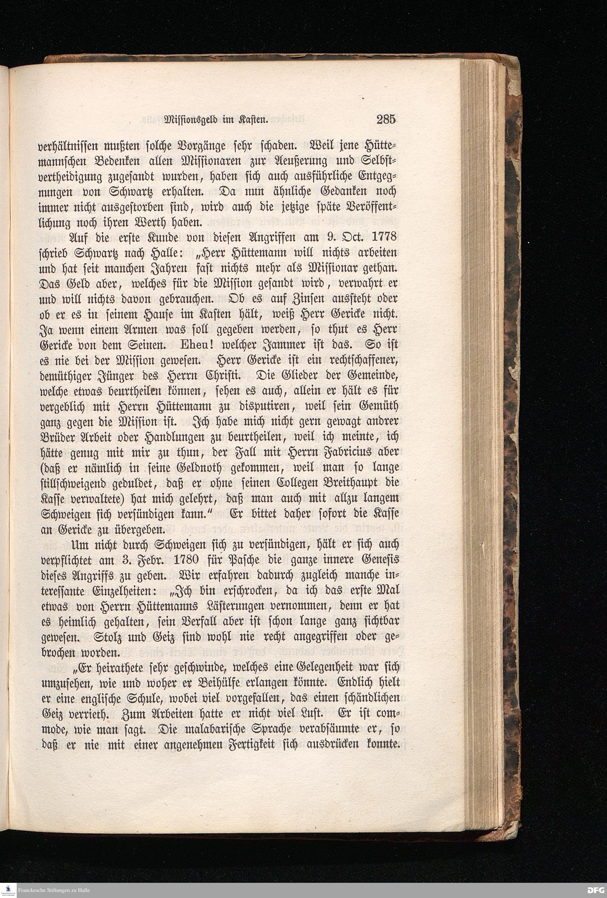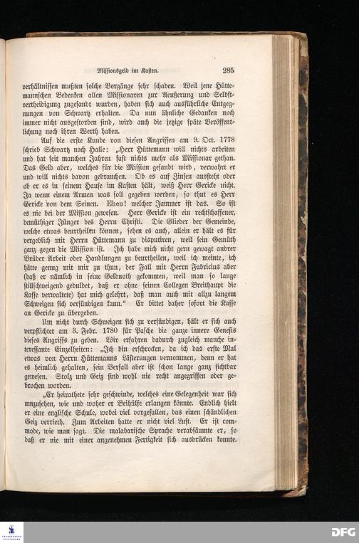 Missionar Christian Friedrich Schwartz. Sein Leben und Wirken aus Briefen des Halleschen Missionsarchivs.