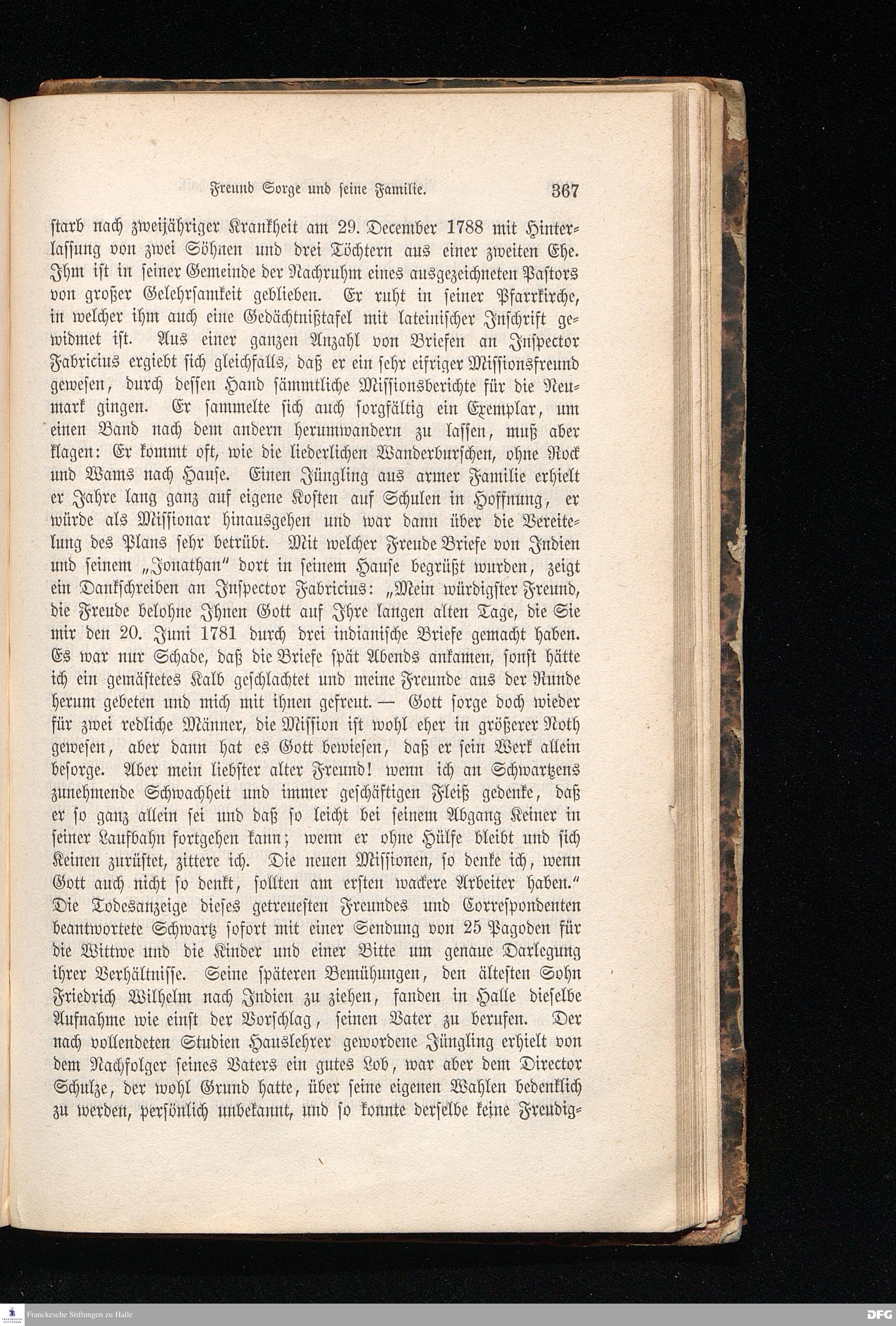 Missionar Christian Friedrich Schwartz. Sein Leben und Wirken aus Briefen des Halleschen Missionsarchivs.