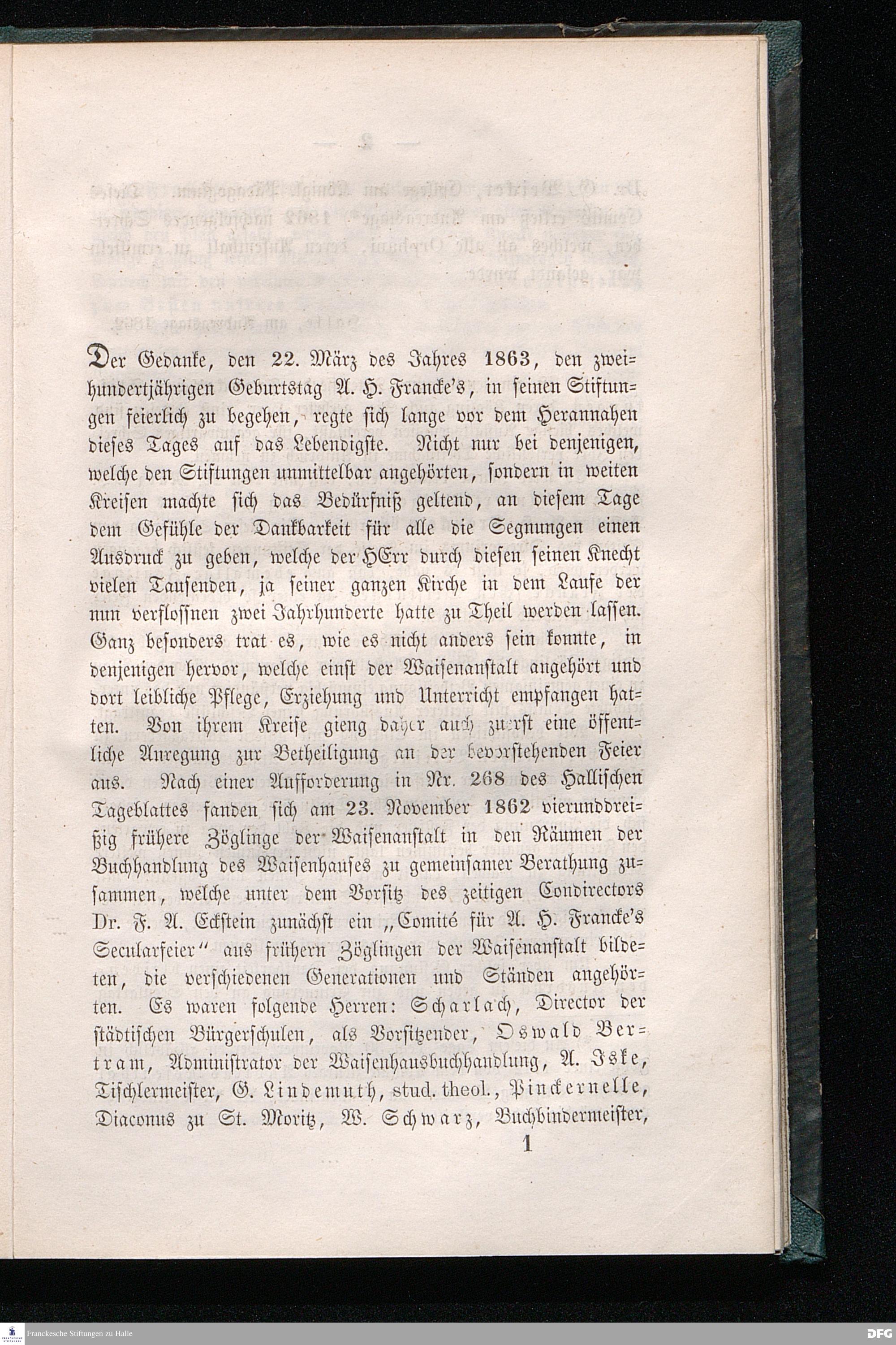Album der ehemaligen Zöglinge der Francke'schen Stiftungen, welches sich an der Secular-Feier August Hermann Francke's den 23. März 1863 betheiligten.