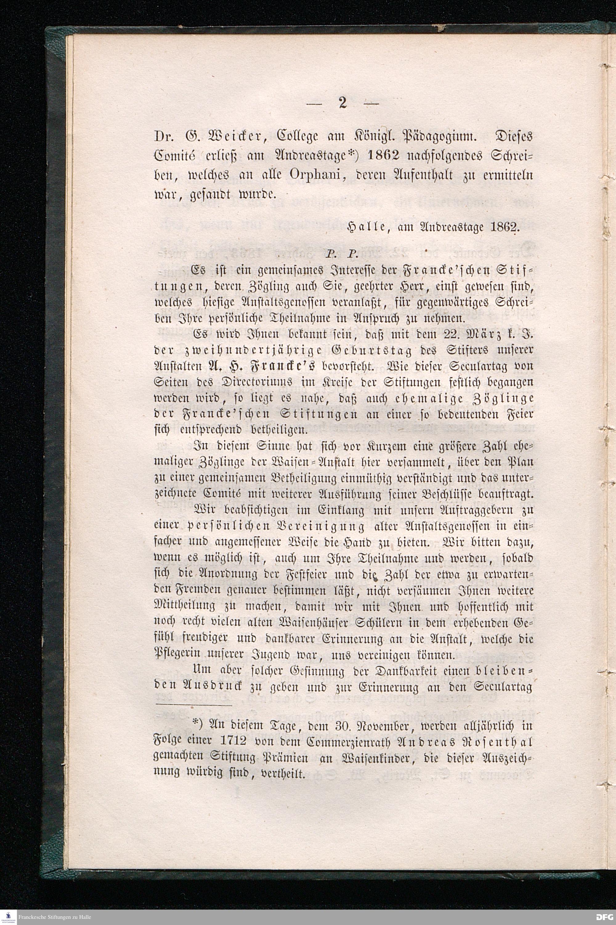 Album der ehemaligen Zöglinge der Francke'schen Stiftungen, welches sich an der Secular-Feier August Hermann Francke's den 23. März 1863 betheiligten.