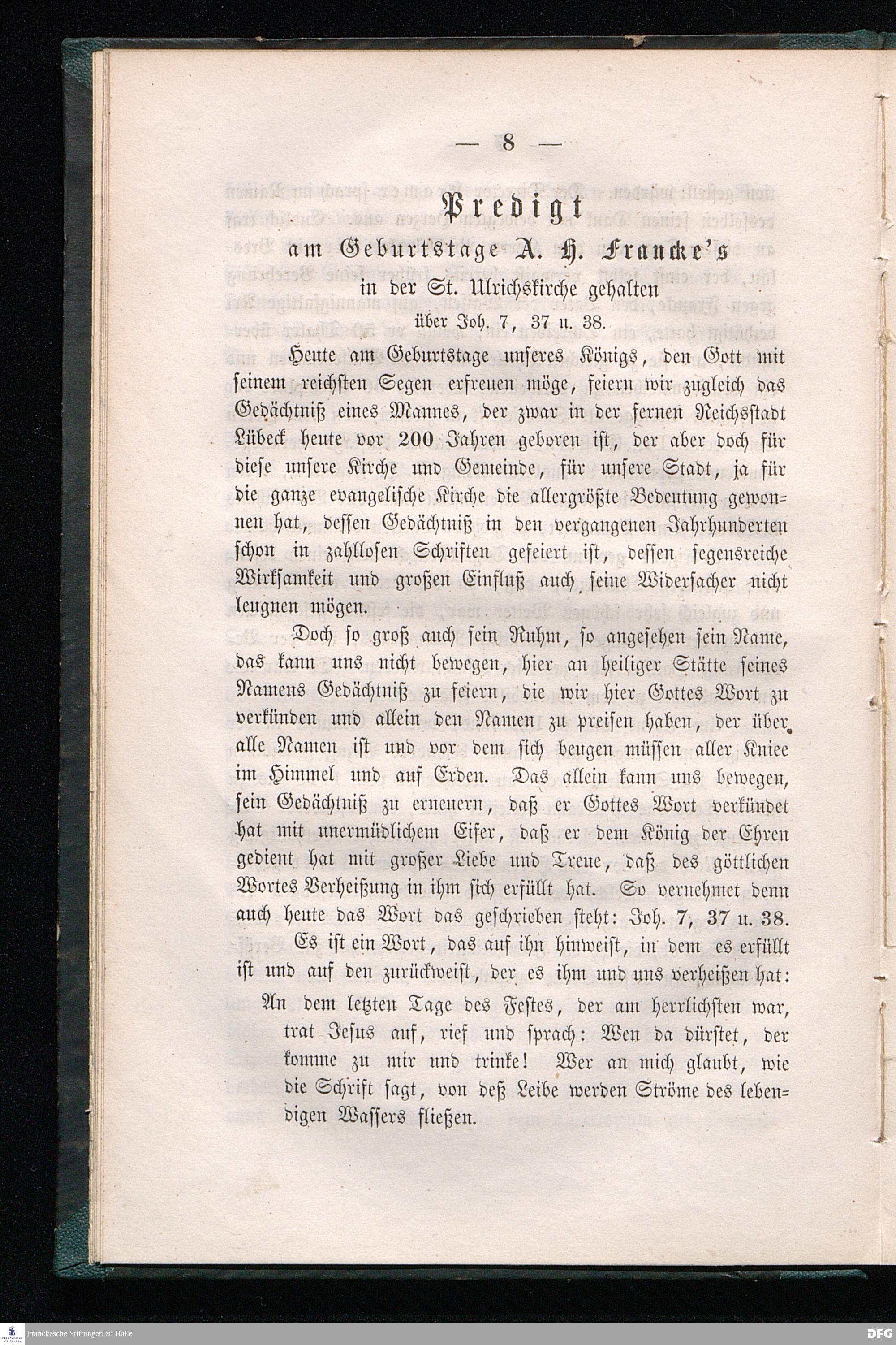 Predigt am Geburtstage A. H. Francke's in der St. Ulrichskirche gehalten über Joh. 7, 37 u. 38.