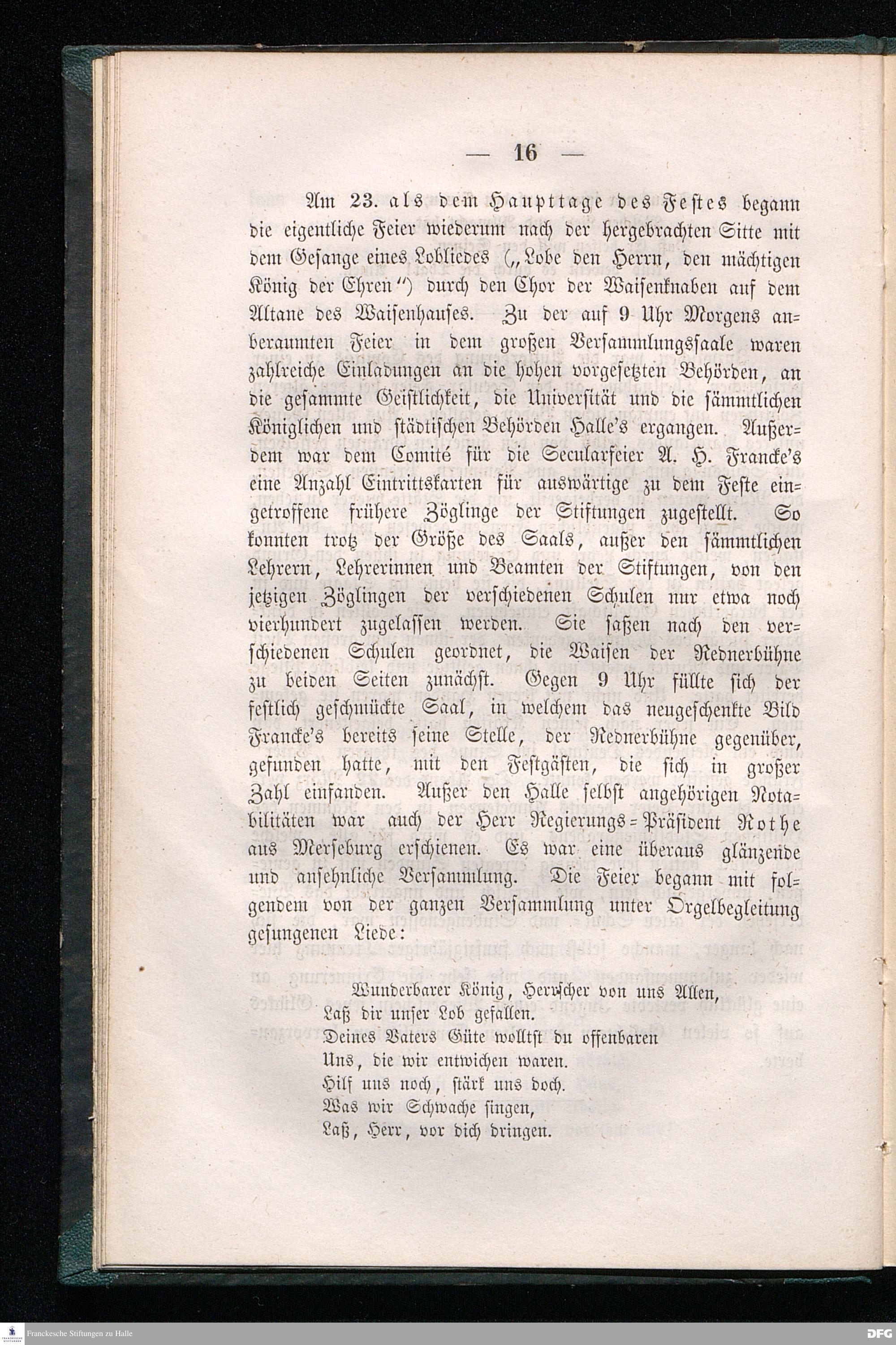 Die Feier des zweihundertjährigen Geburtstags August Hermann Francke's in den Franckeschen Stiftungen.