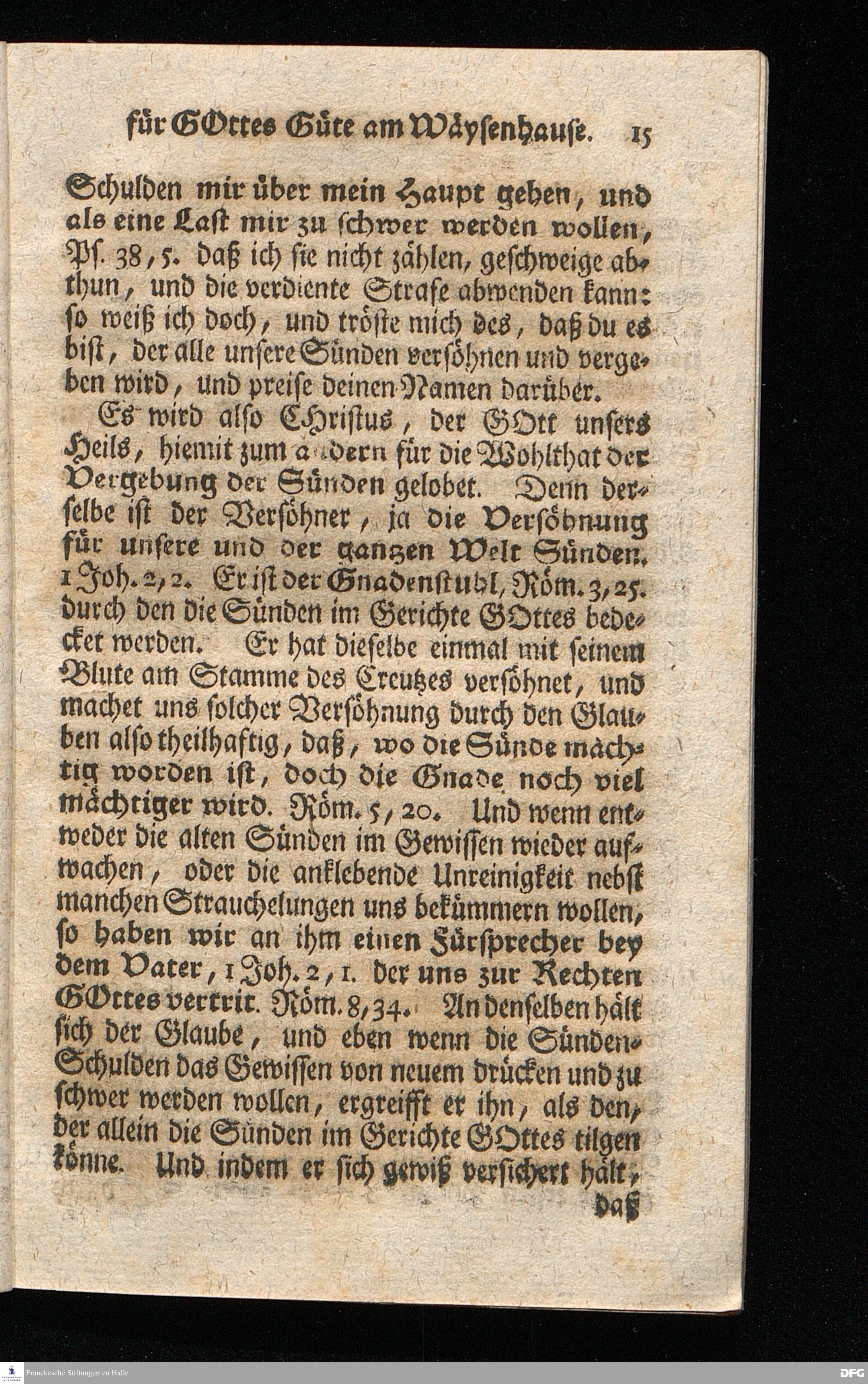 Schuldiges Lob- und Danck-Opfer für die Güte und Wohlthaten Gottes, so derselbe an dem Wäysenhause zu Glaucha an Halle seitdem der Grundstein zu demselben vor funfzig Jahren geleget worden, bis hieher reichlich erzeiget hat, den 24.sten Jul. 1748.