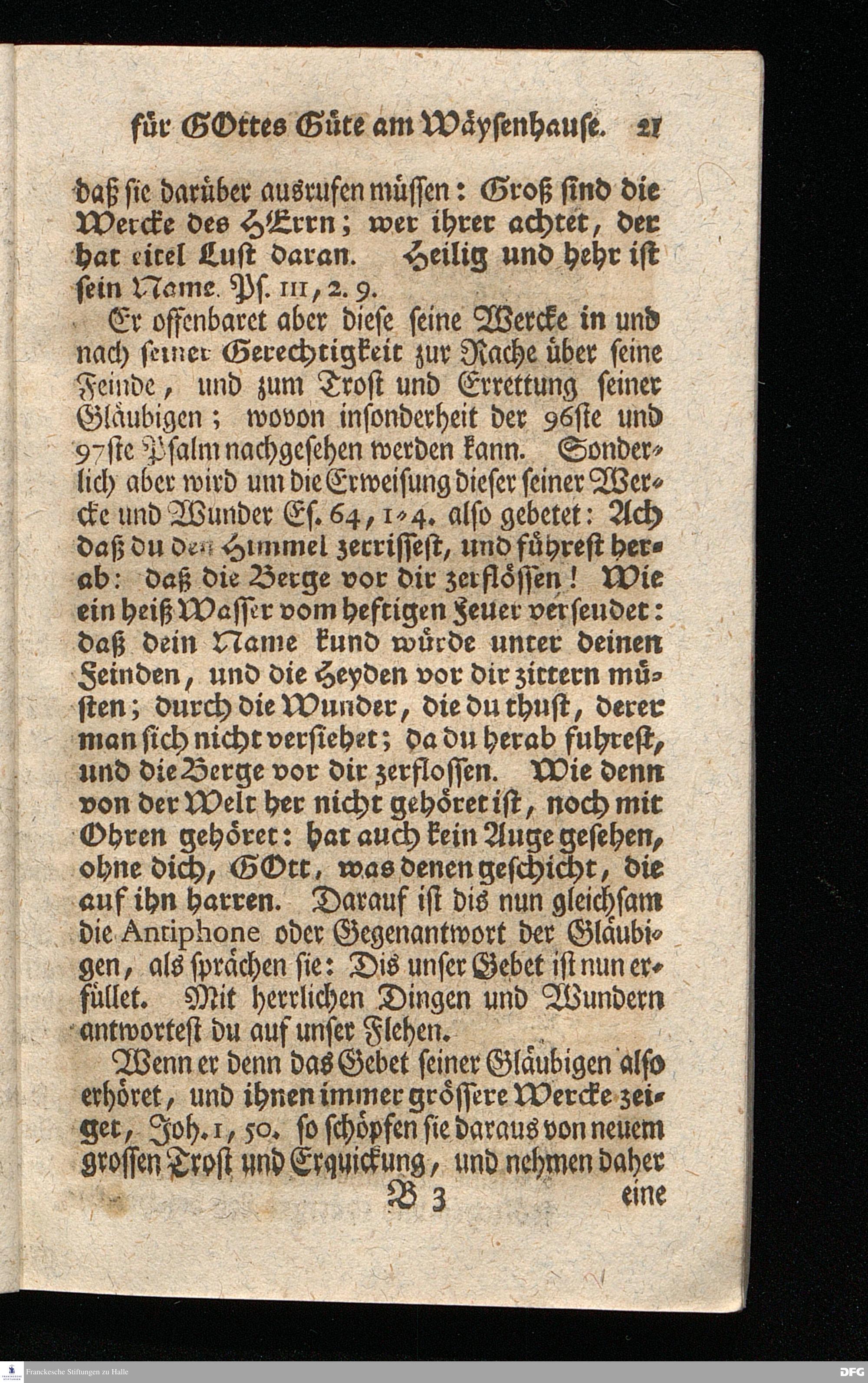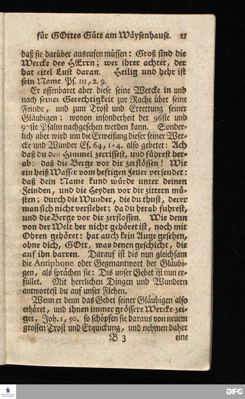 Schuldiges Lob- und Danck-Opfer für die Güte und Wohlthaten Gottes, so derselbe an dem Wäysenhause zu Glaucha an Halle seitdem der Grundstein zu demselben vor funfzig Jahren geleget worden, bis hieher reichlich erzeiget hat, den 24.sten Jul. 1748.
