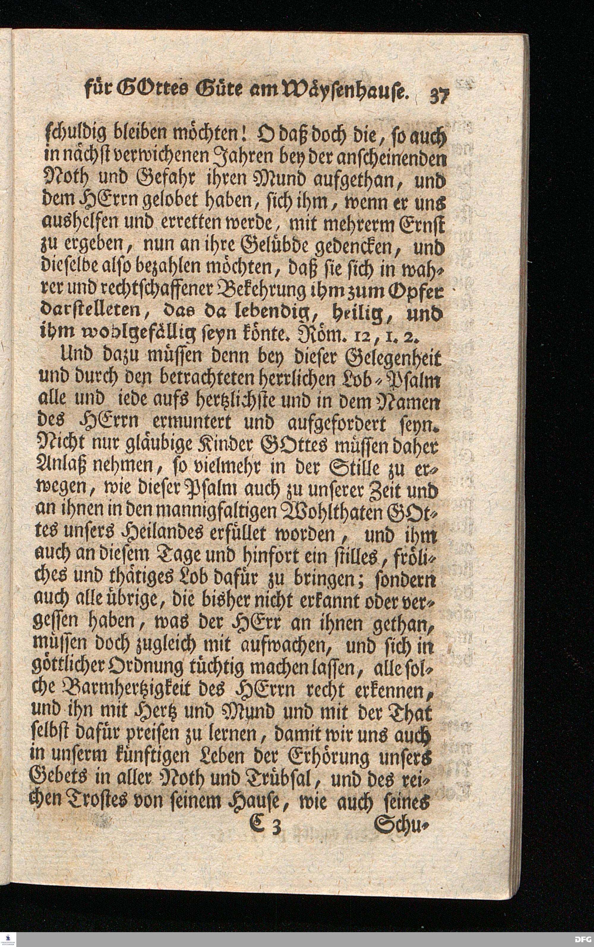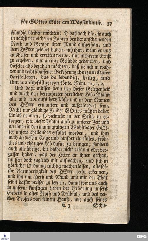 Schuldiges Lob- und Danck-Opfer für die Güte und Wohlthaten Gottes, so derselbe an dem Wäysenhause zu Glaucha an Halle seitdem der Grundstein zu demselben vor funfzig Jahren geleget worden, bis hieher reichlich erzeiget hat, den 24.sten Jul. 1748.