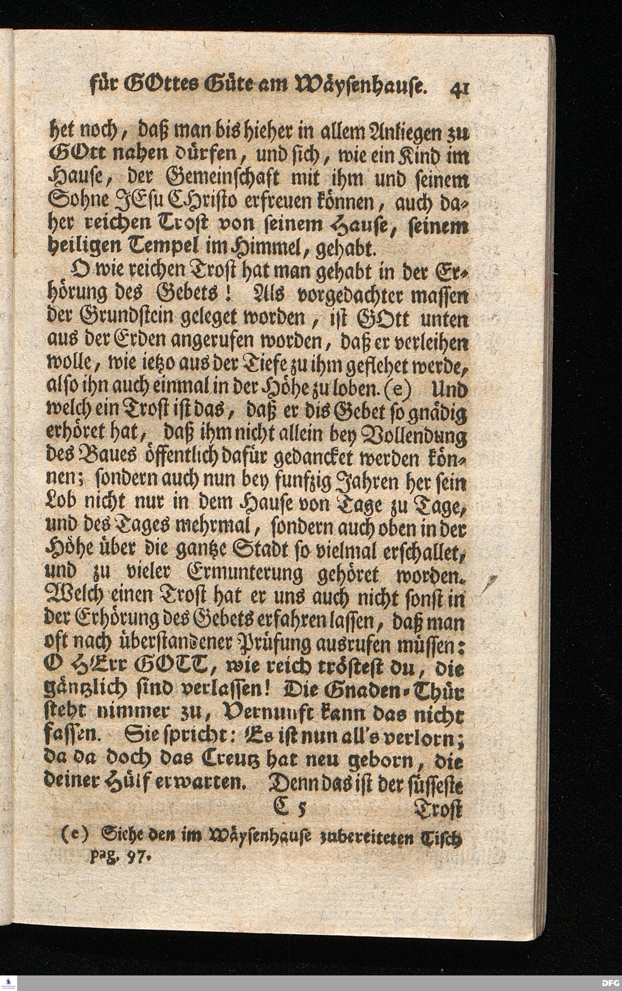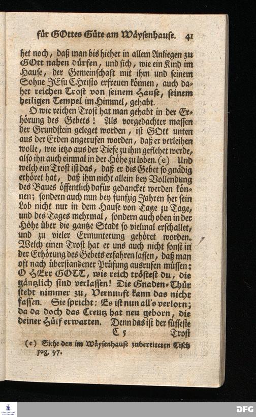 Schuldiges Lob- und Danck-Opfer für die Güte und Wohlthaten Gottes, so derselbe an dem Wäysenhause zu Glaucha an Halle seitdem der Grundstein zu demselben vor funfzig Jahren geleget worden, bis hieher reichlich erzeiget hat, den 24.sten Jul. 1748.