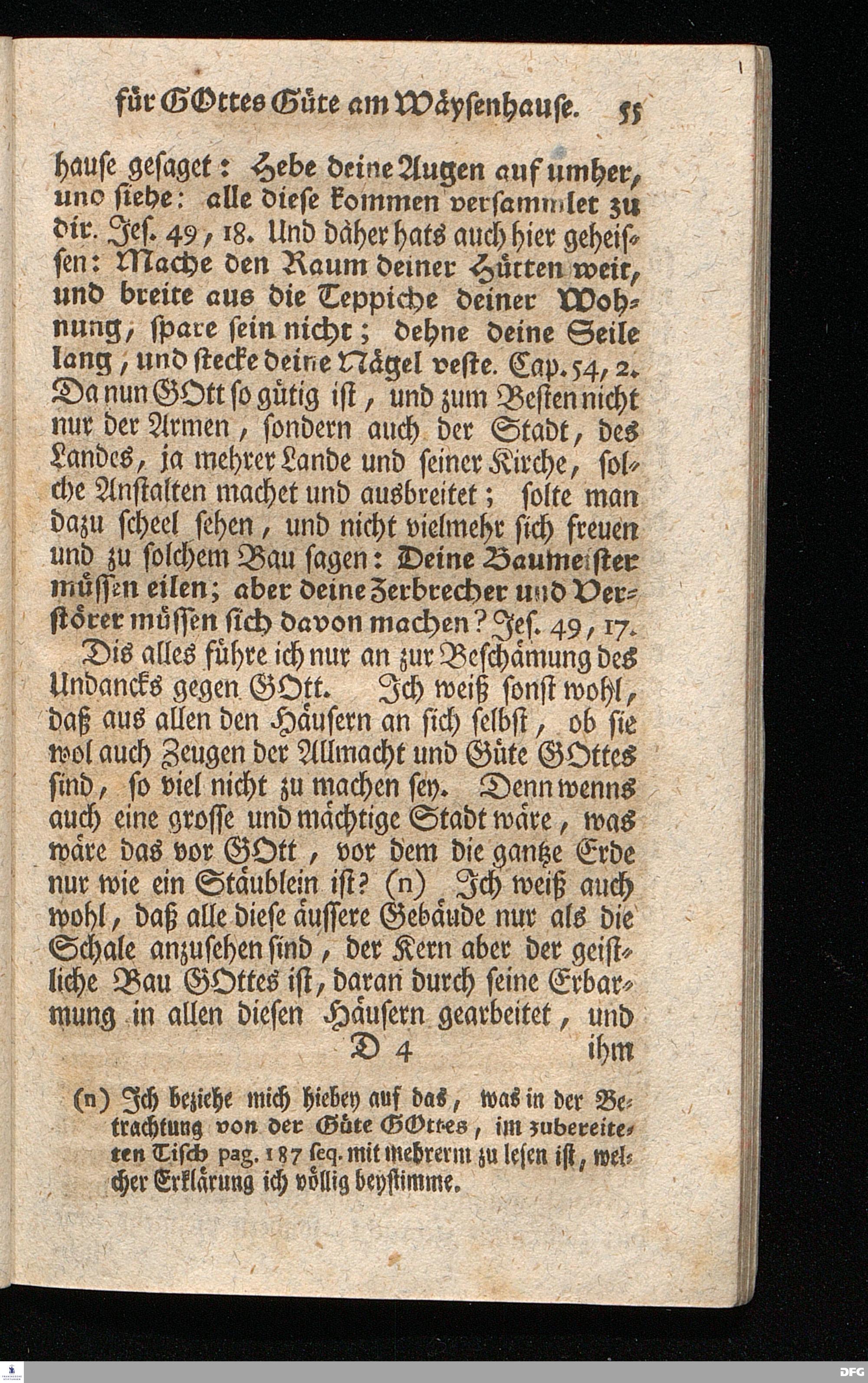 Schuldiges Lob- und Danck-Opfer für die Güte und Wohlthaten Gottes, so derselbe an dem Wäysenhause zu Glaucha an Halle seitdem der Grundstein zu demselben vor funfzig Jahren geleget worden, bis hieher reichlich erzeiget hat, den 24.sten Jul. 1748.