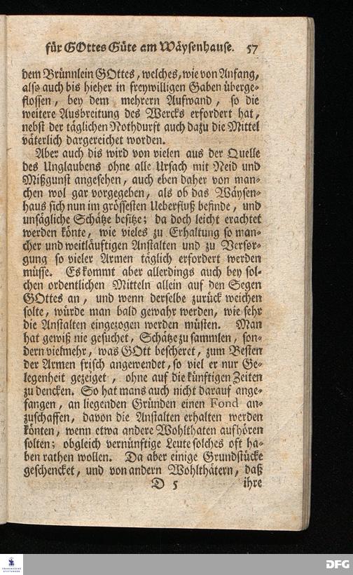 Schuldiges Lob- und Danck-Opfer für die Güte und Wohlthaten Gottes, so derselbe an dem Wäysenhause zu Glaucha an Halle seitdem der Grundstein zu demselben vor funfzig Jahren geleget worden, bis hieher reichlich erzeiget hat, den 24.sten Jul. 1748.