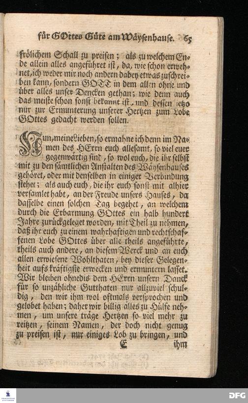 Schuldiges Lob- und Danck-Opfer für die Güte und Wohlthaten Gottes, so derselbe an dem Wäysenhause zu Glaucha an Halle seitdem der Grundstein zu demselben vor funfzig Jahren geleget worden, bis hieher reichlich erzeiget hat, den 24.sten Jul. 1748.