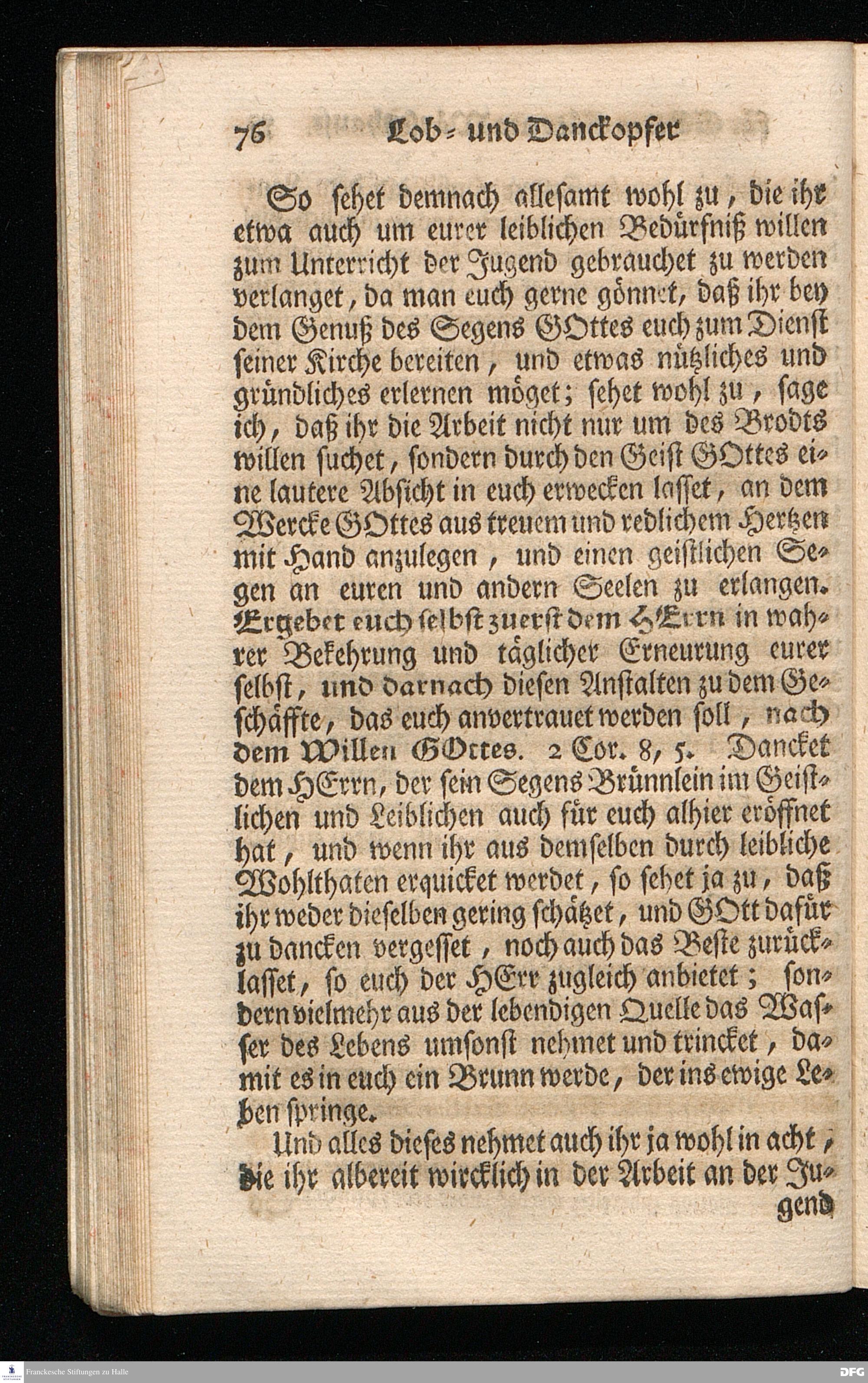 Schuldiges Lob- und Danck-Opfer für die Güte und Wohlthaten Gottes, so derselbe an dem Wäysenhause zu Glaucha an Halle seitdem der Grundstein zu demselben vor funfzig Jahren geleget worden, bis hieher reichlich erzeiget hat, den 24.sten Jul. 1748.