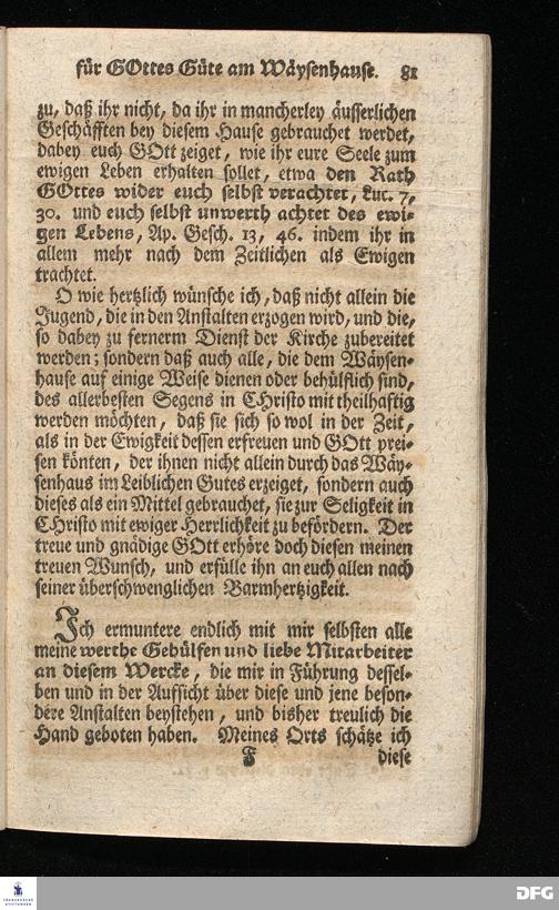 Schuldiges Lob- und Danck-Opfer für die Güte und Wohlthaten Gottes, so derselbe an dem Wäysenhause zu Glaucha an Halle seitdem der Grundstein zu demselben vor funfzig Jahren geleget worden, bis hieher reichlich erzeiget hat, den 24.sten Jul. 1748.