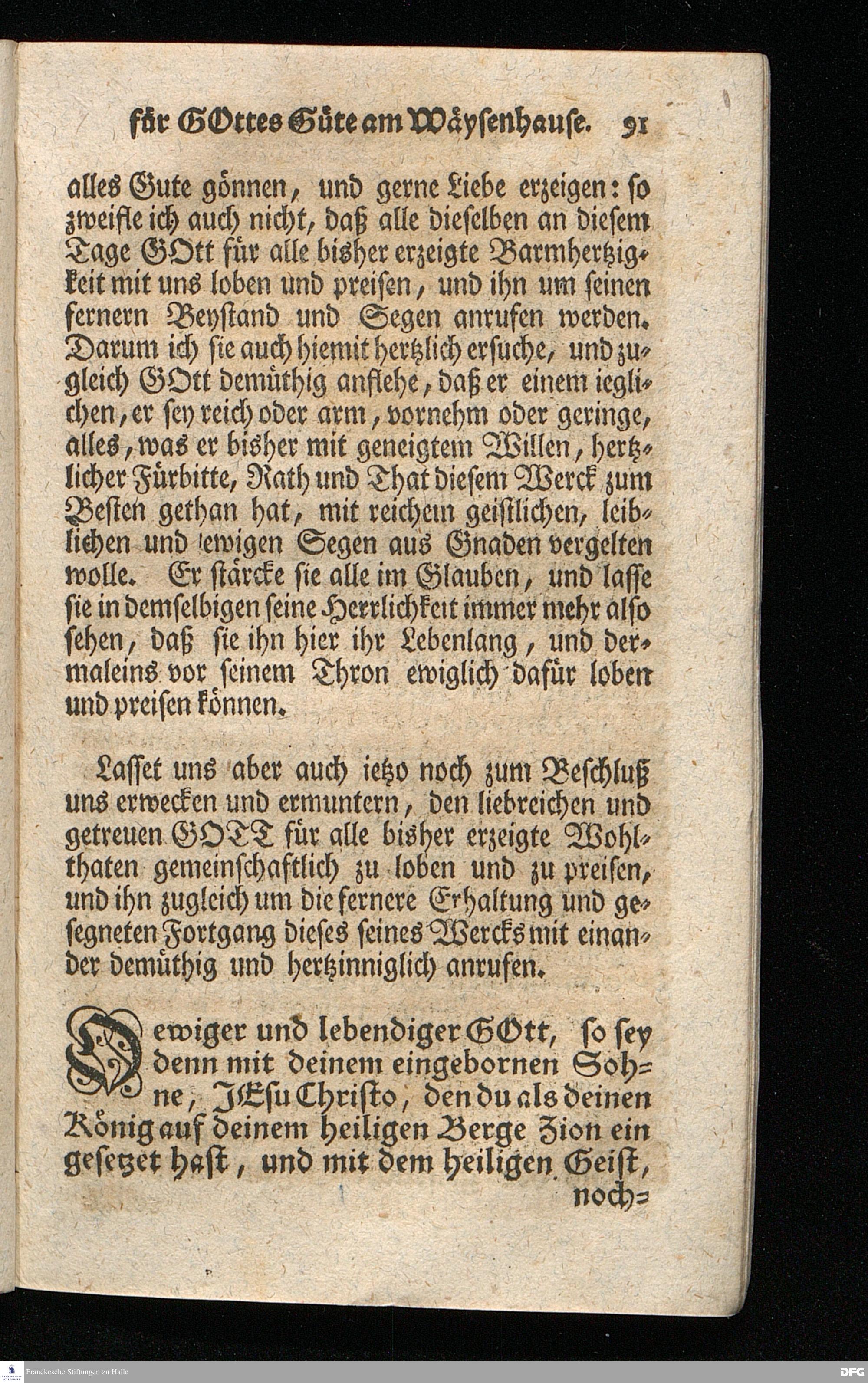 Schuldiges Lob- und Danck-Opfer für die Güte und Wohlthaten Gottes, so derselbe an dem Wäysenhause zu Glaucha an Halle seitdem der Grundstein zu demselben vor funfzig Jahren geleget worden, bis hieher reichlich erzeiget hat, den 24.sten Jul. 1748.