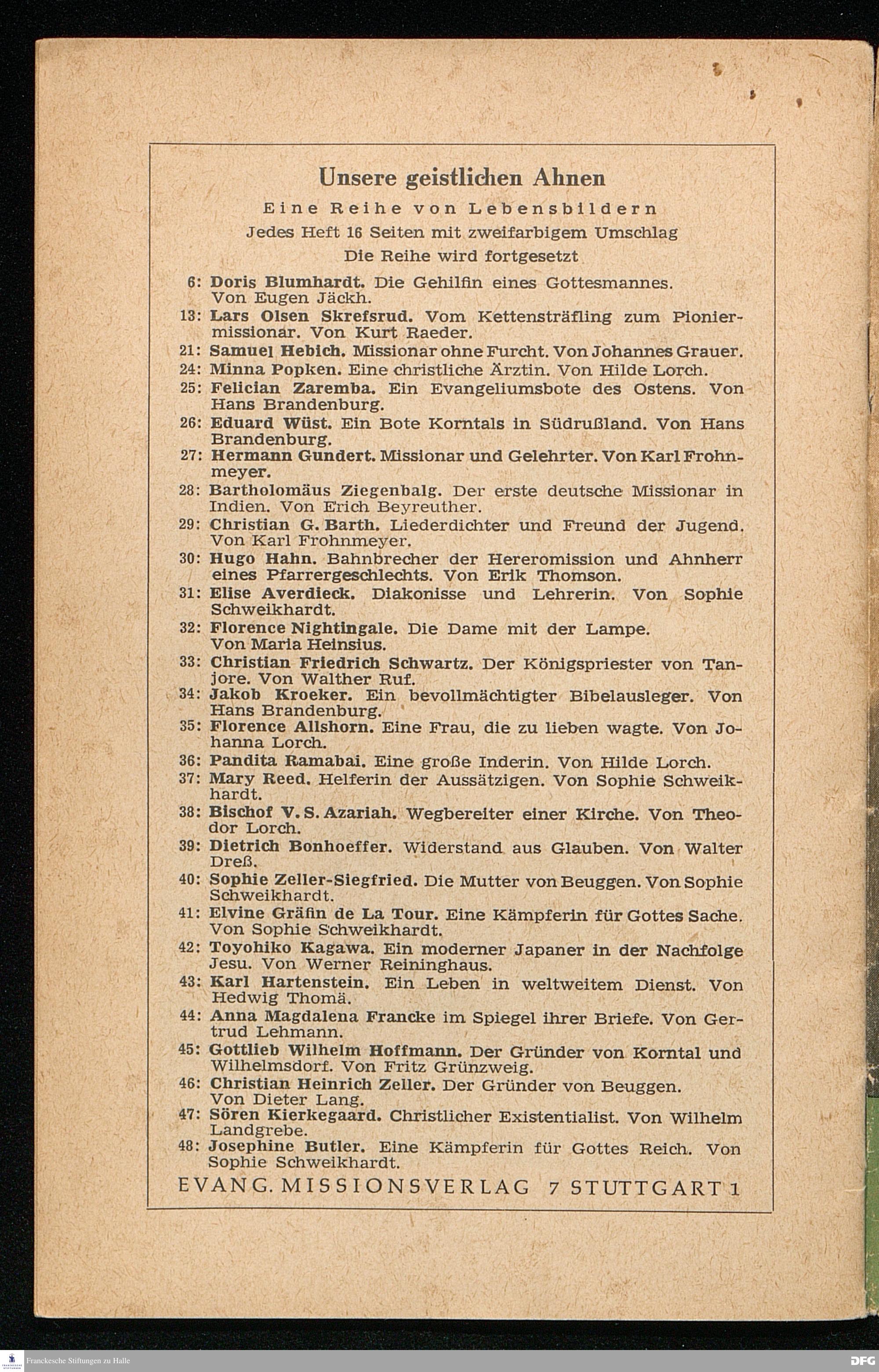 Bartholomäus Ziegenbalg. Der erste deutsche Missionar in Indien. Zum 250. Jahrestag seiner Ausreise.