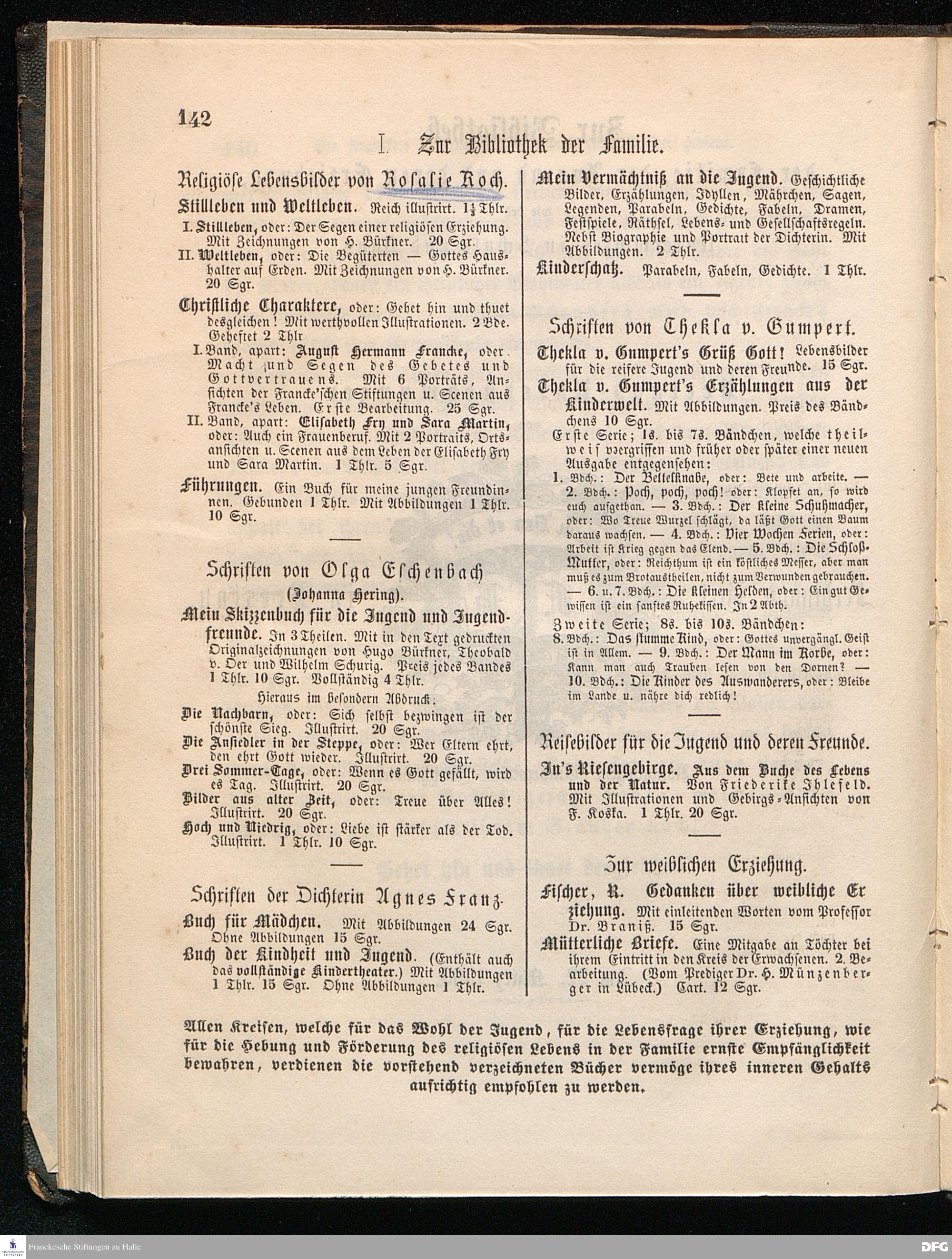 Zur Bibliothek der Familie, der Jugend und deren Erziehung, wie des Unterrichtes in Schule und Haus.