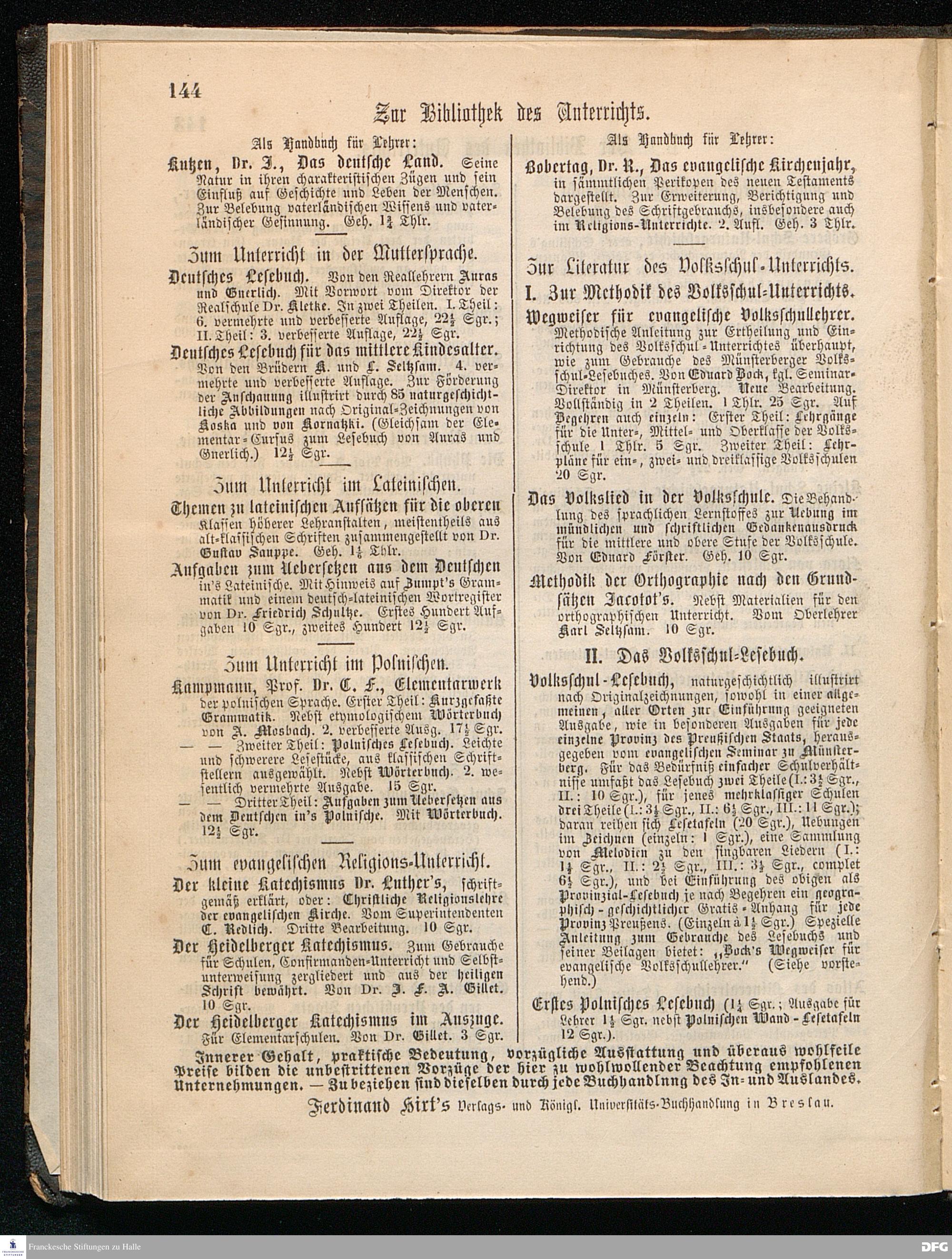 Zur Bibliothek der Familie, der Jugend und deren Erziehung, wie des Unterrichtes in Schule und Haus.