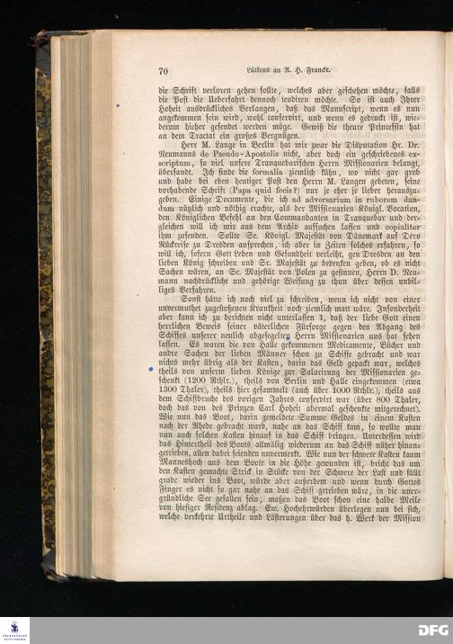 Ziegenbalg und Plütschau. Die Gründungsjahre der Trankebarschen Mission. Ein Beitrag zur Geschichte des Pietismus nach handschriftlichen Quellen und ältesten Drucken.