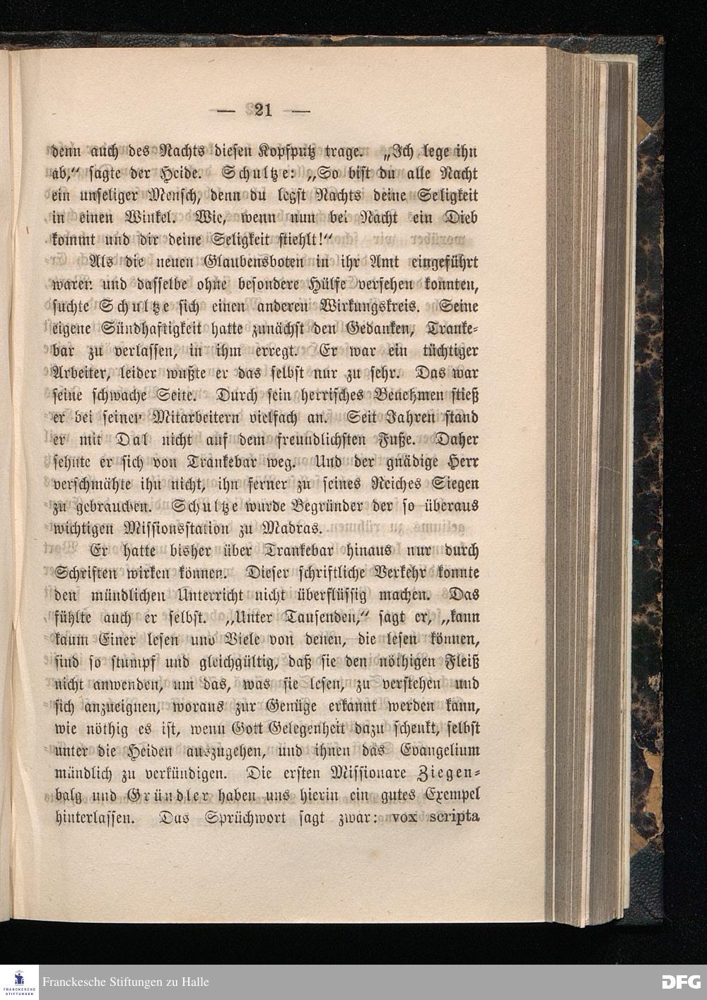 Benjamin Schultze, evangelischer Missionar in Trankebar und Madras. Nach seinem Leben...