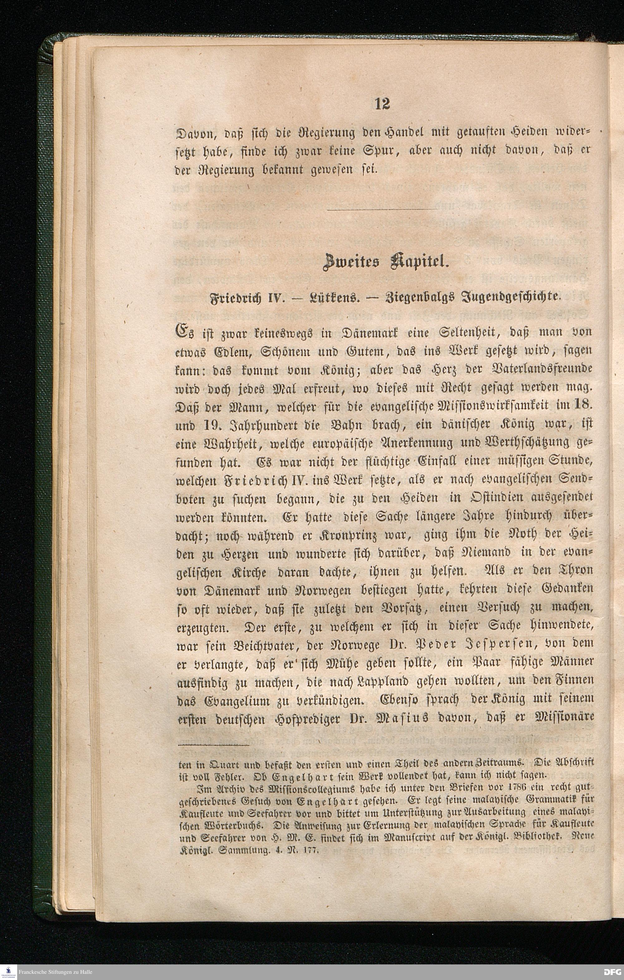 Zweites Kapitel. Friedrich IV. - Lütkens. - Ziegenbalgs Jugendgeschichte.