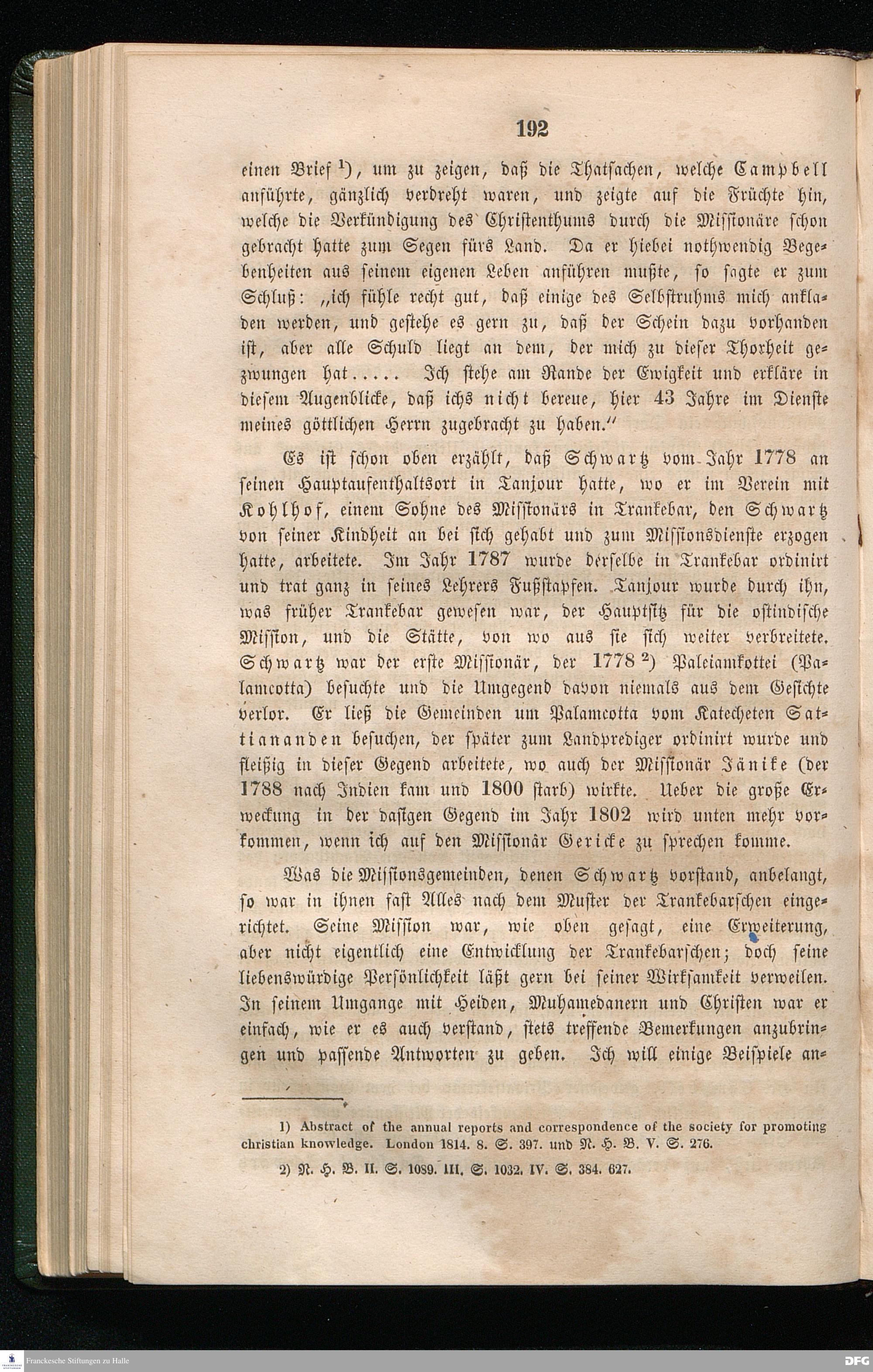 Dreizehntes Kapitel. C. F. Schwartz in Trankebar, Tirutschinapally und Tanjour.